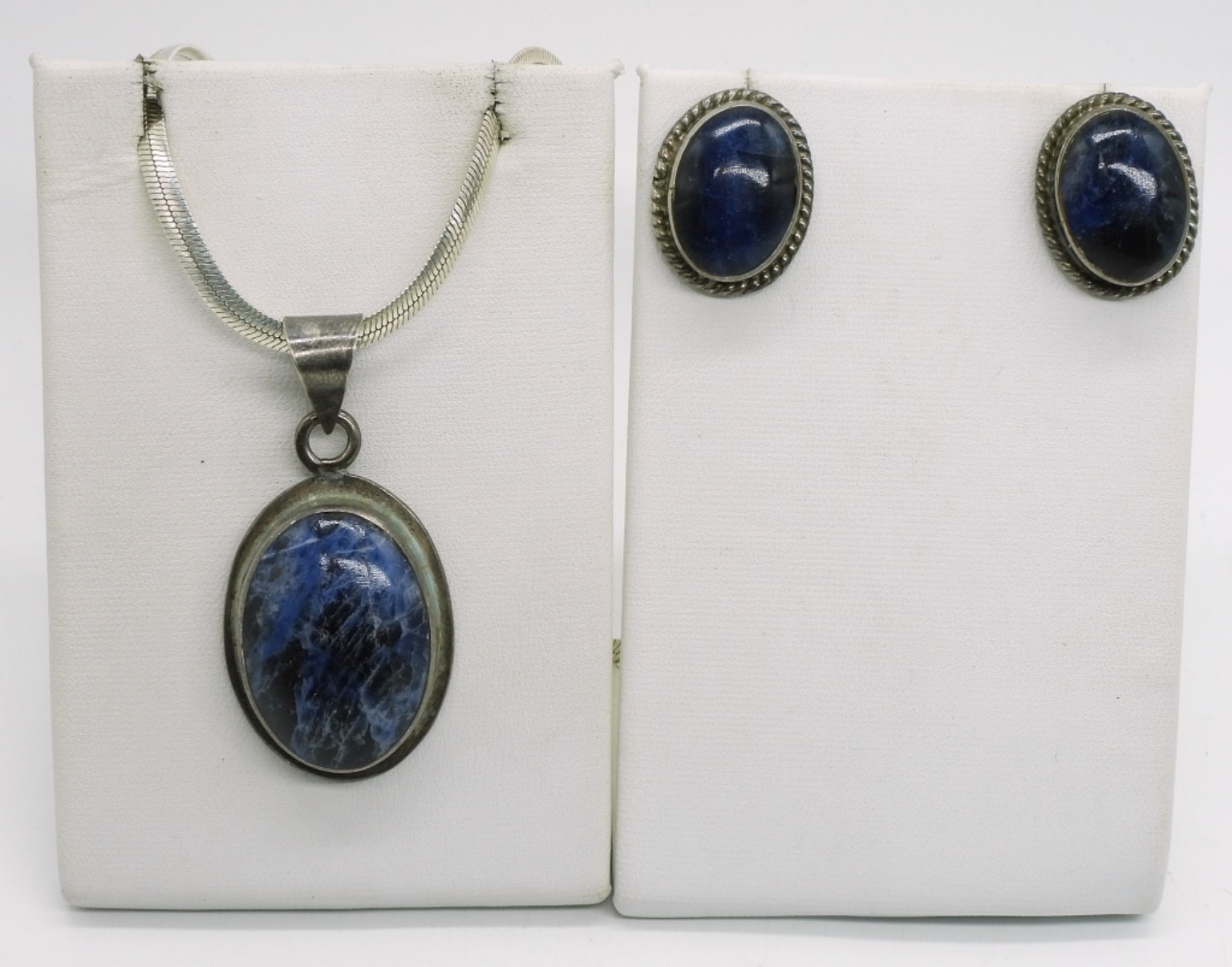 Sodalite 925 Pendant & Lapis Lazuli Earrings