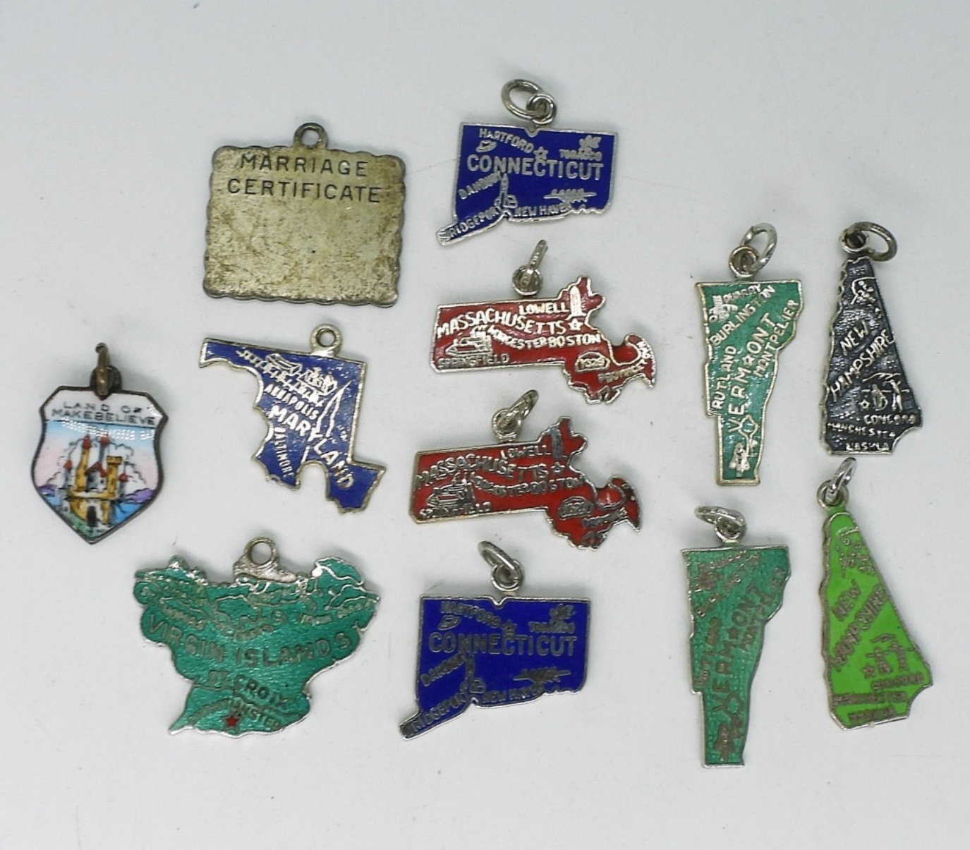Twelve vintage sterling charms. 1″ or smaller. (11.5 dwt) (6x4x2)