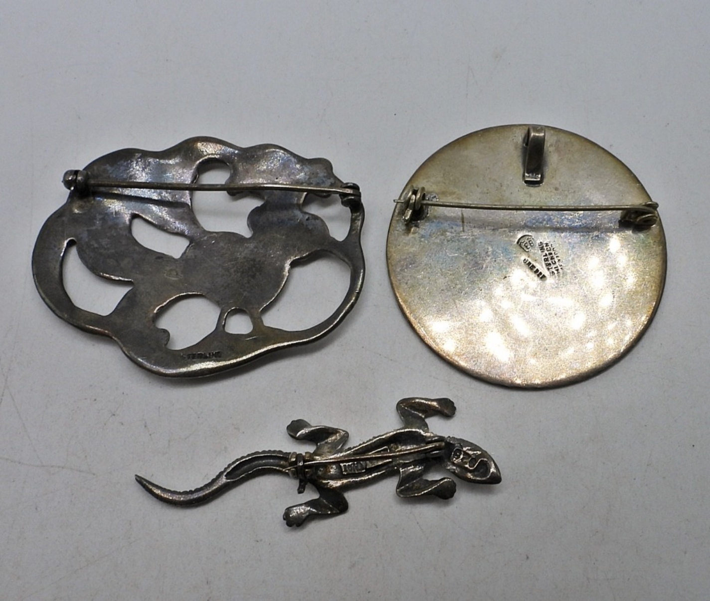 Three sterling brooches, 2″. (20.7 dwt)