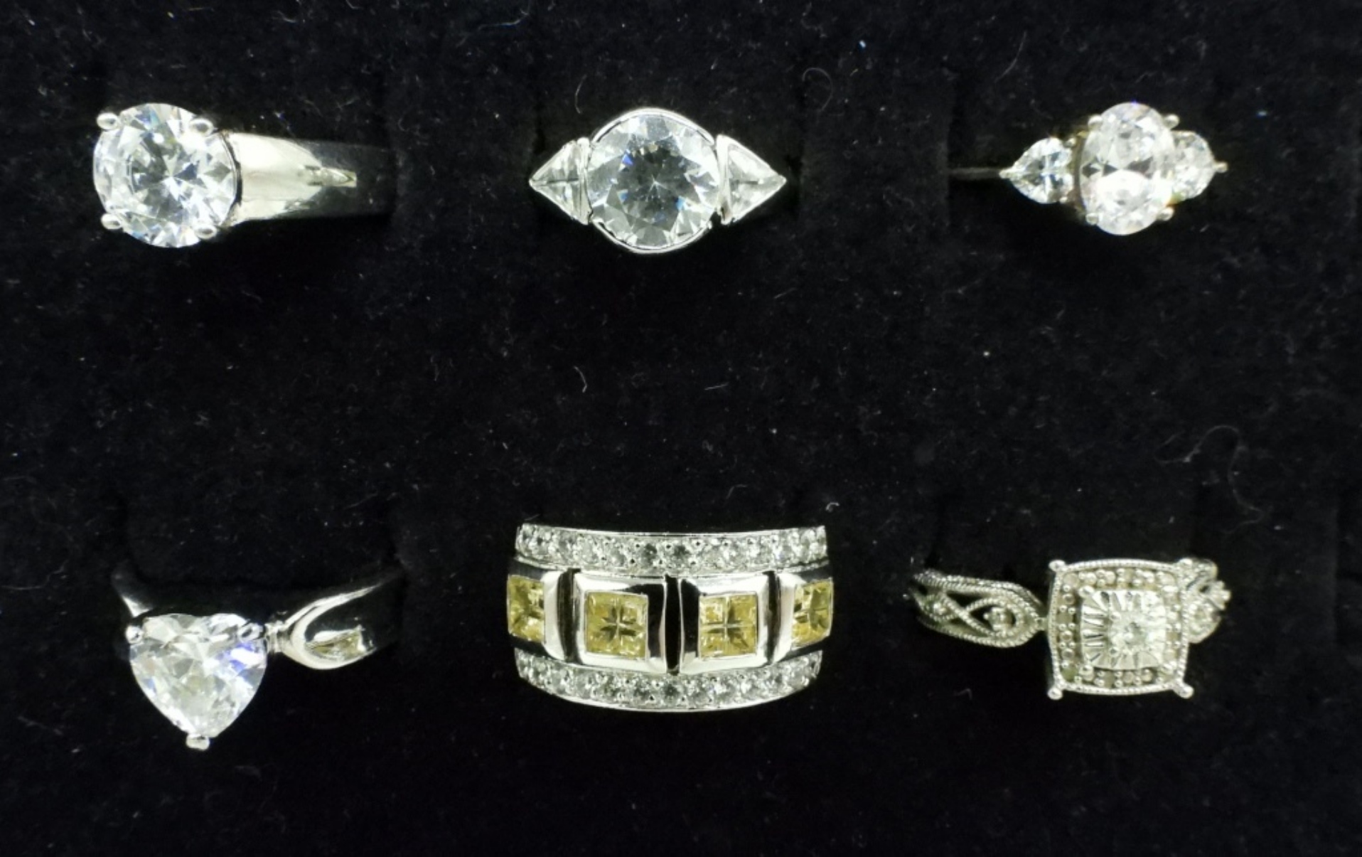 Six sterling bridal style rings. Sizes 4.5-7 (16.4 dwt)