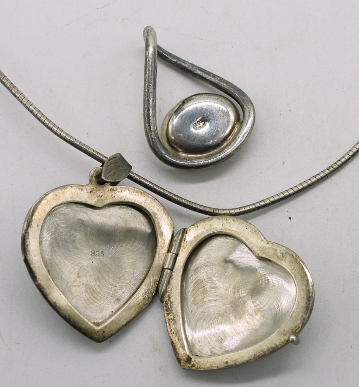 One sterling heart locket necklace, 18″ and black onyx pendant. (17 dwt)