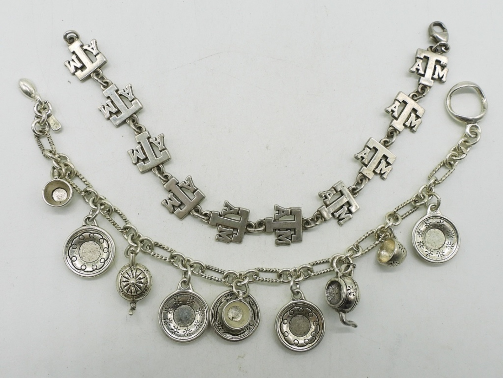 Texas A&M sterling bracelet, Tea set sterling bracelet, 7.5″. (29.5 dwt)
