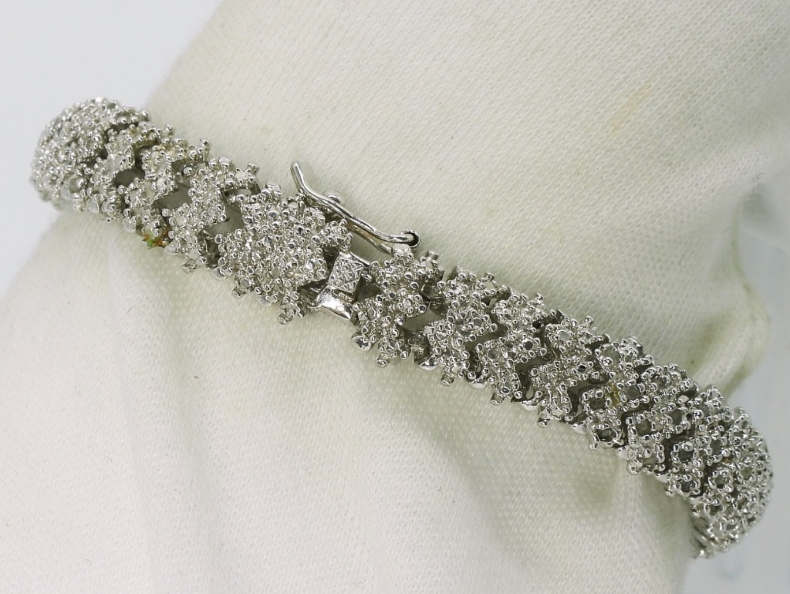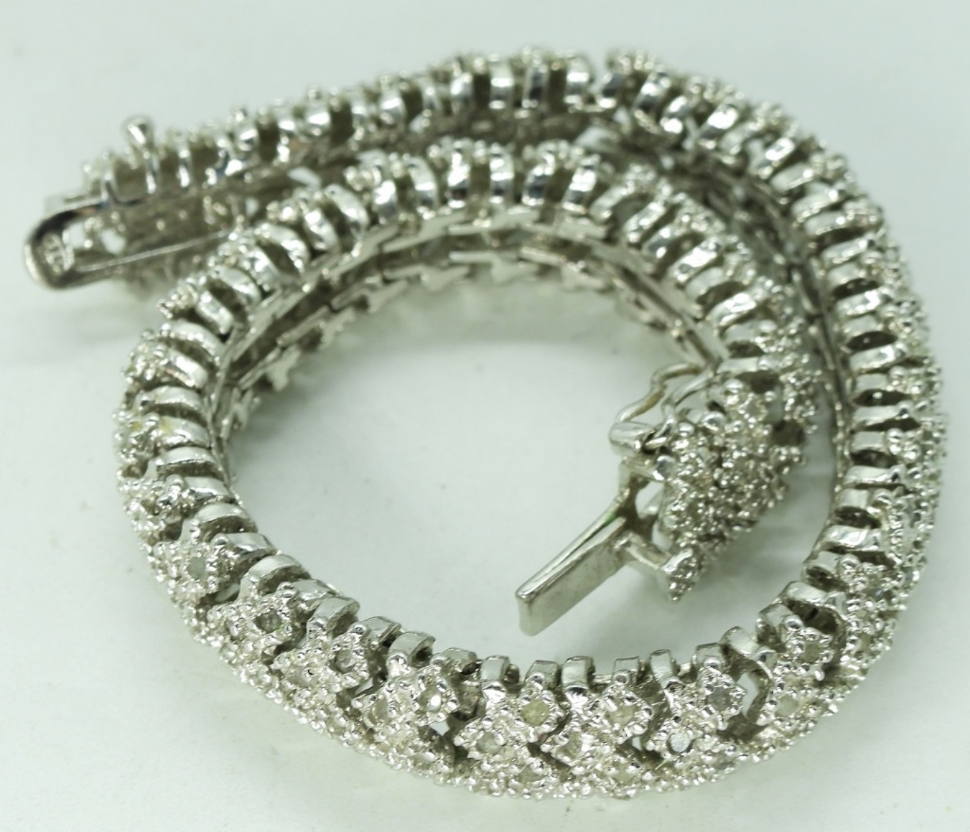 Sterling Diamond Bracelet. Diamonds HAVE been tested! All diamonds seem to be accounted for. 7″ long. (16.4 dwt) (6x4x2)