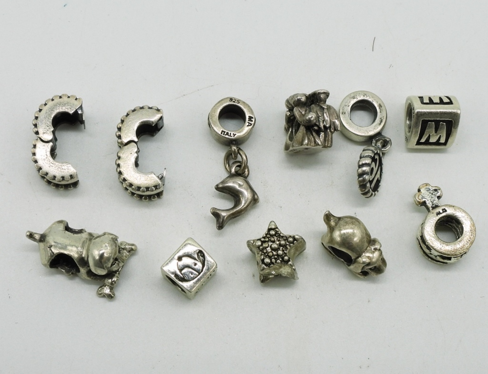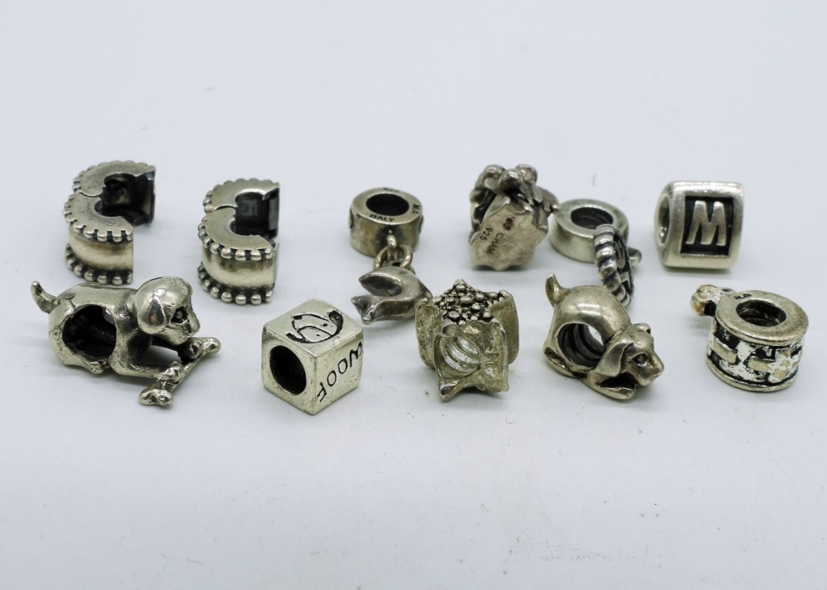 11 Pandora Style (NOT Pandora Brand) sterling charms. (17.5 dwt) (6x4x2)