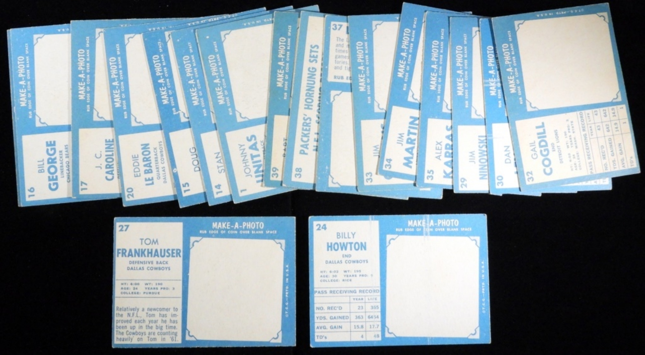 Including Tom Frankhauser, Billy Howton, L.G. Dupre and more. Various conditions, duplicates possible