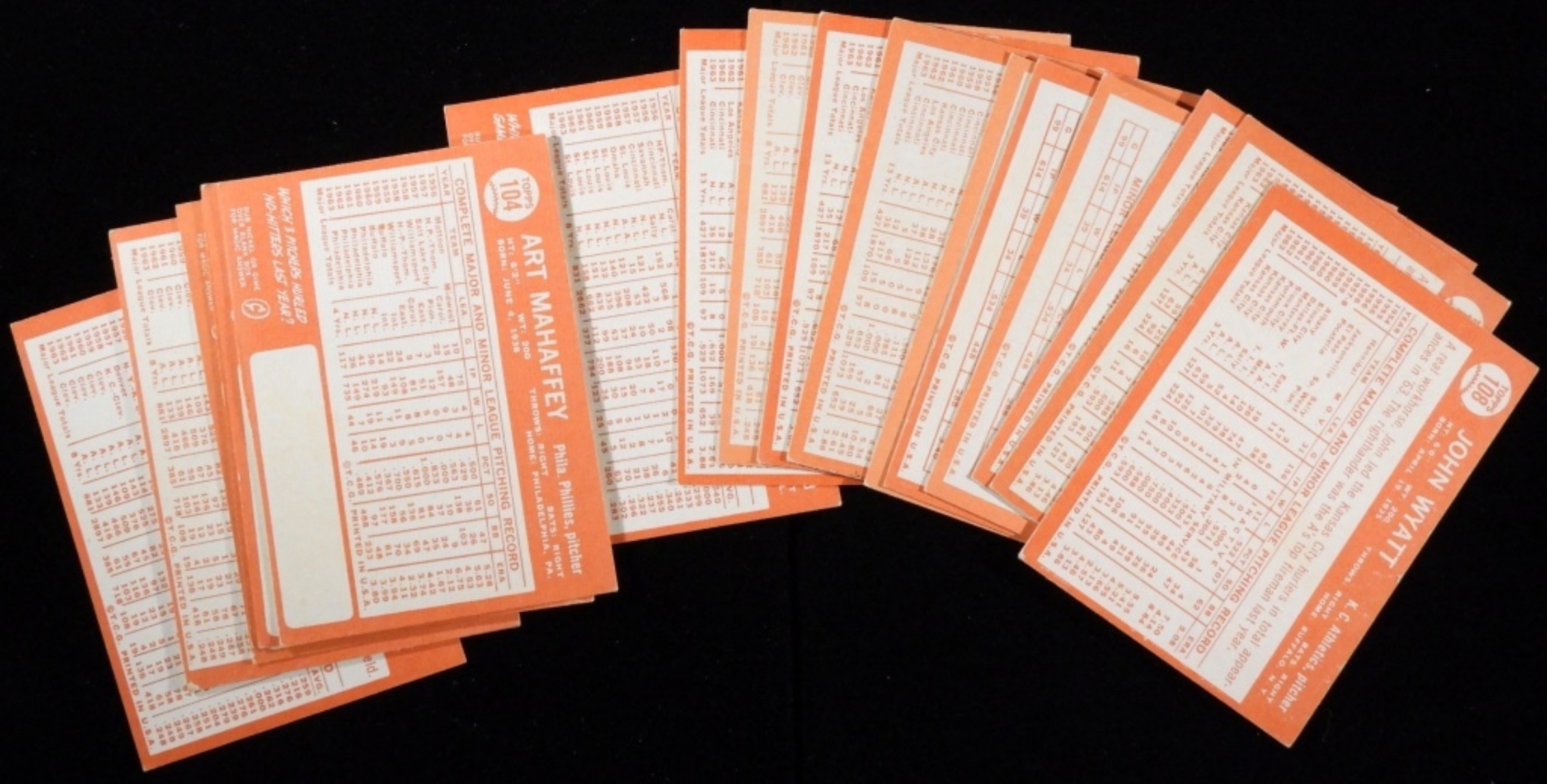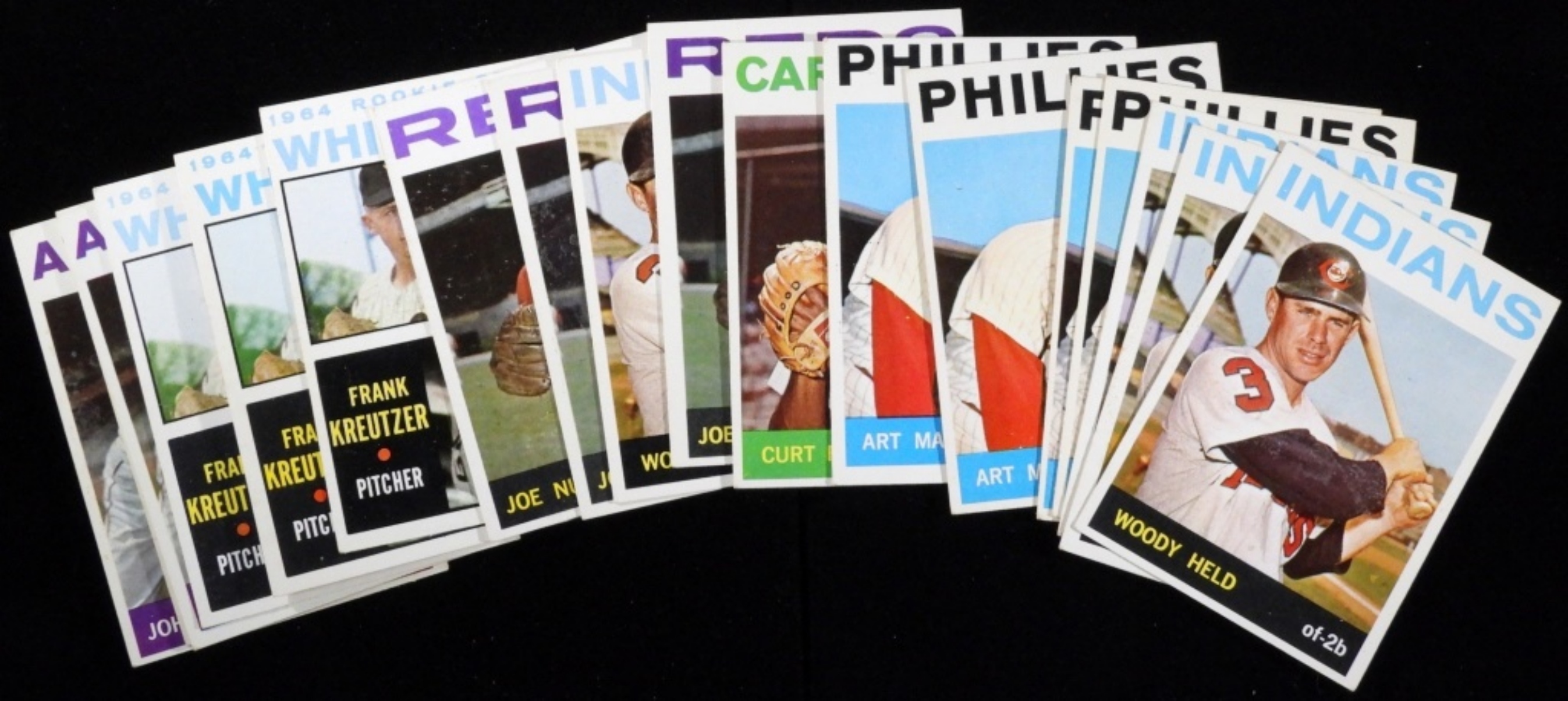 Including art Mahaffey, Woody Held, Joe Nuxhall and more. Various conditions, multiples in this lot