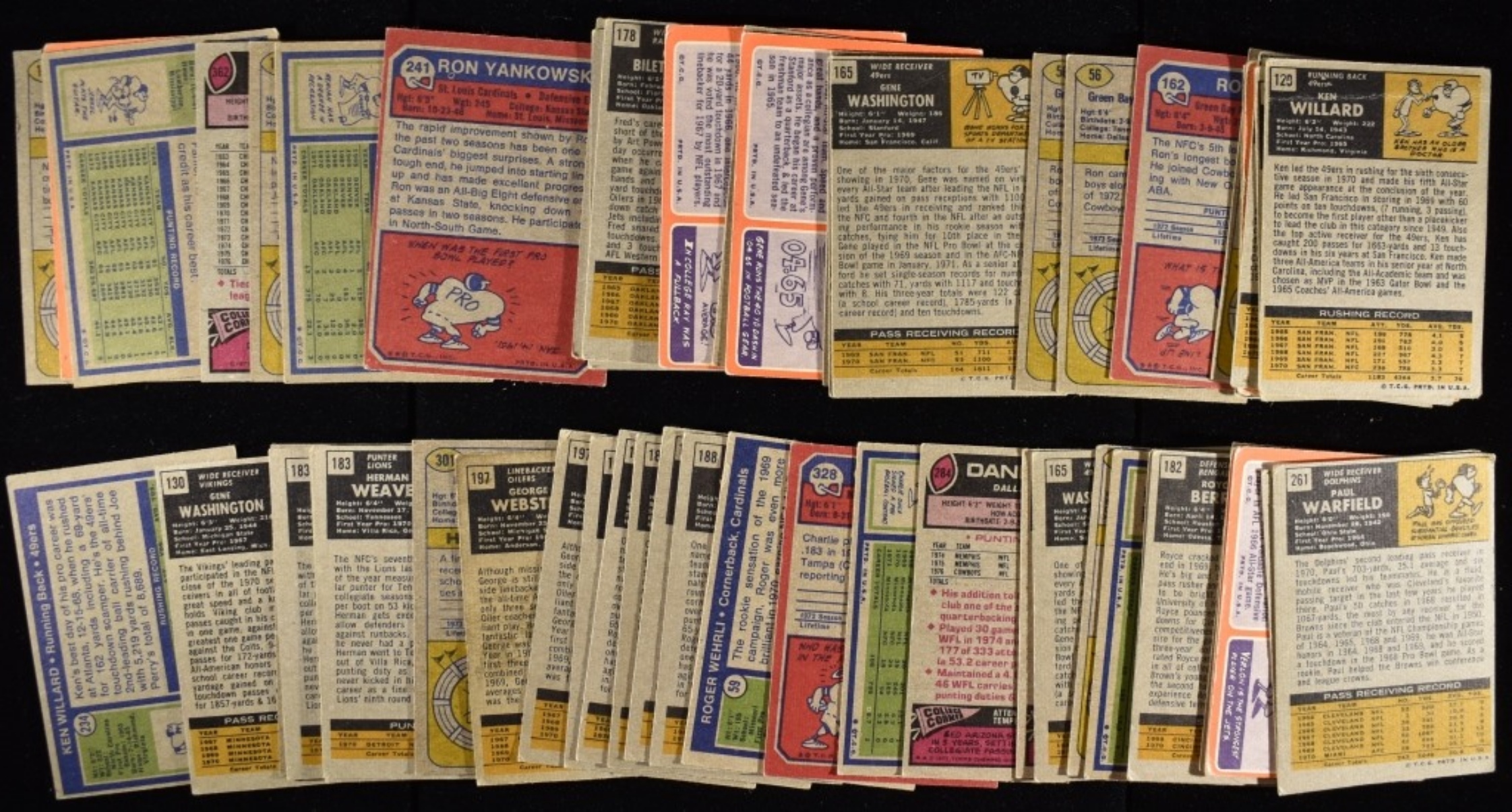 Including Sherman White, Ron Widby, Dave Wilcox and more. Various conditions, duplicates possible