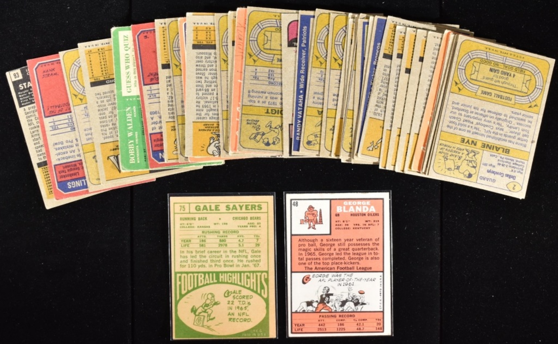 George Blanda, Gale Sayers, and Larry Stallins. Conditions may vary. May have duplicates or reprints.