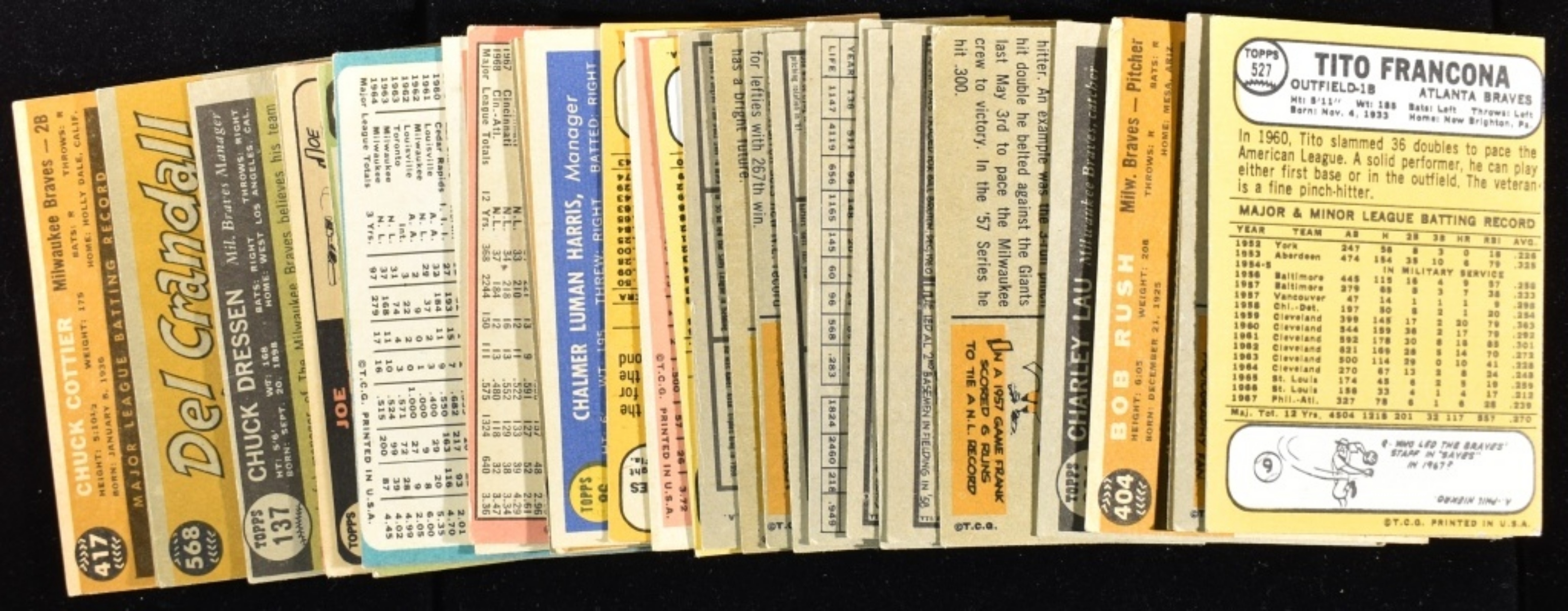 Eddie Mathews, Chuck Cottier, Del Crandal. Conditions may vary. May have duplicates or reprints.