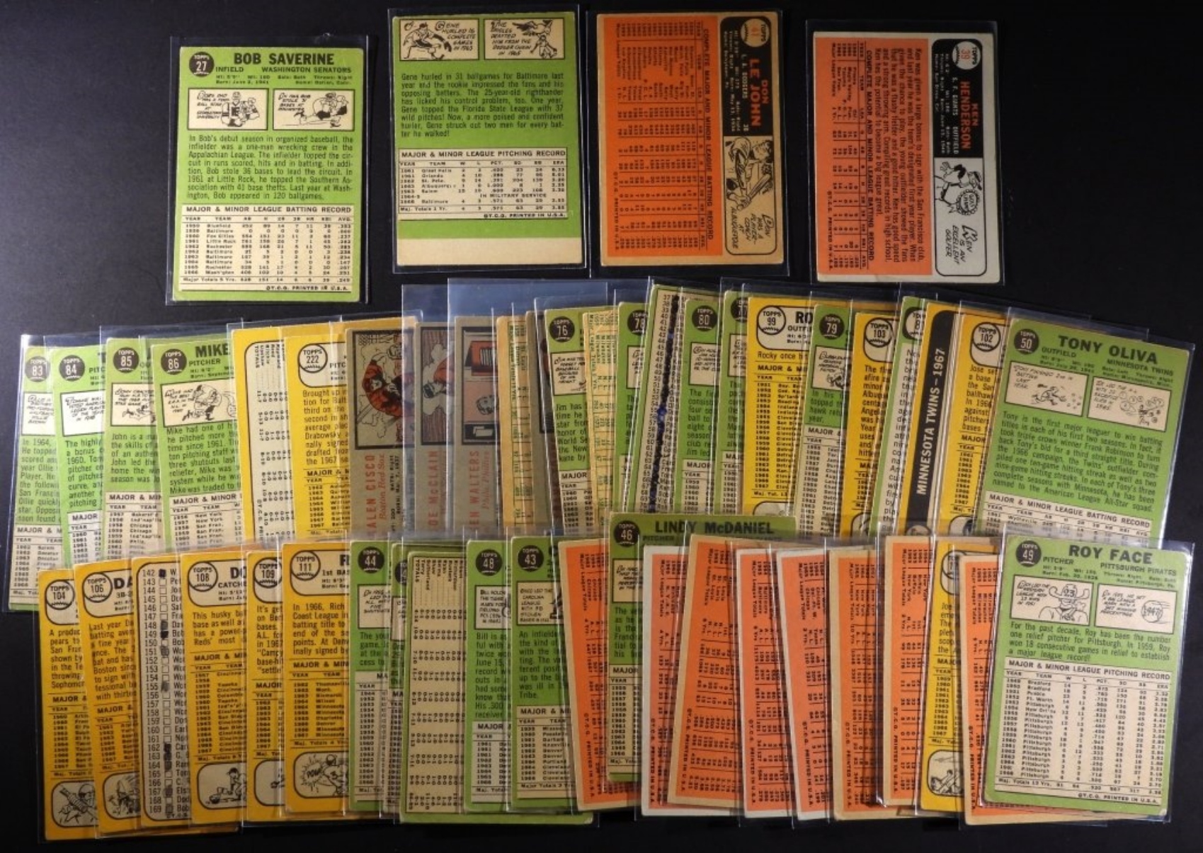 Unsorted, not verified, conditions very, may be duplicates. Does include Mike McCormick, Johnny Callison, Tommie Sisk, Ollie Brown, and more