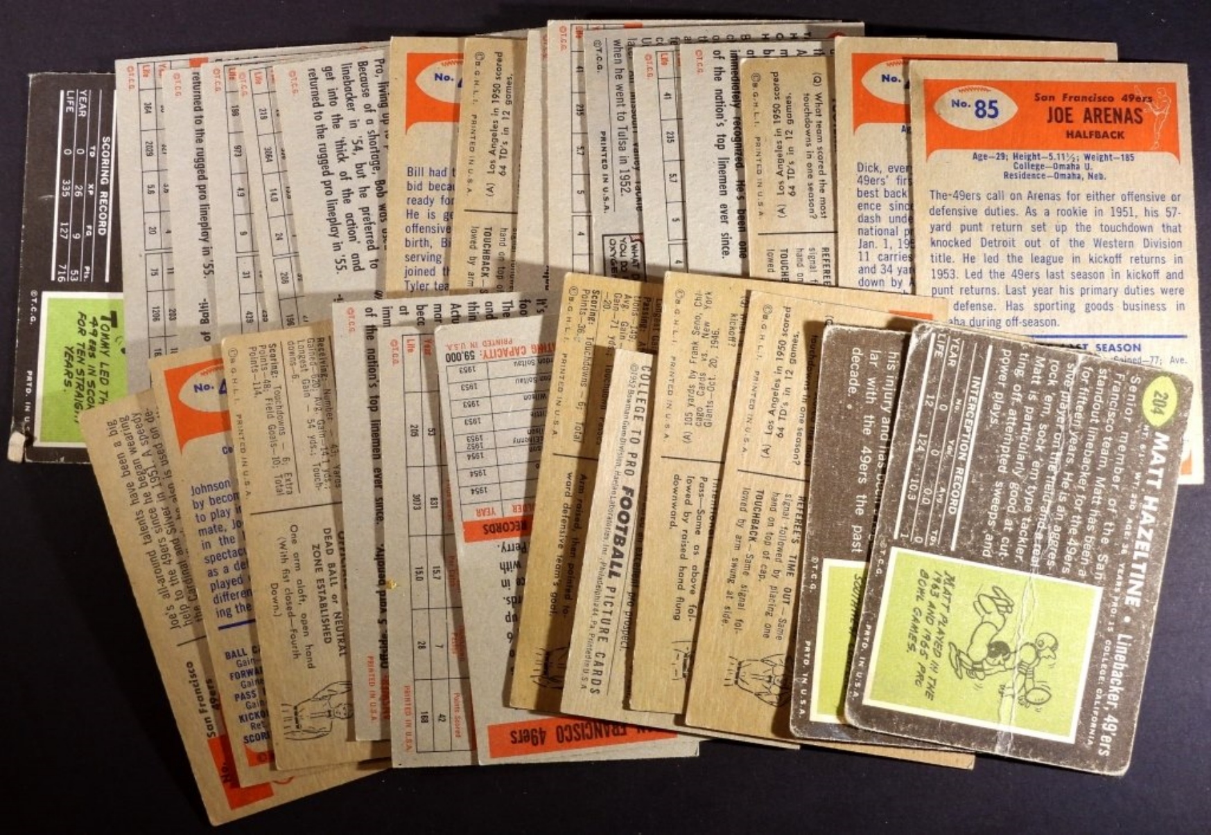 Includes Hugh McElhenny, Bob Toneff, Joe Arenas and more. Various conditions, duplicates possible.