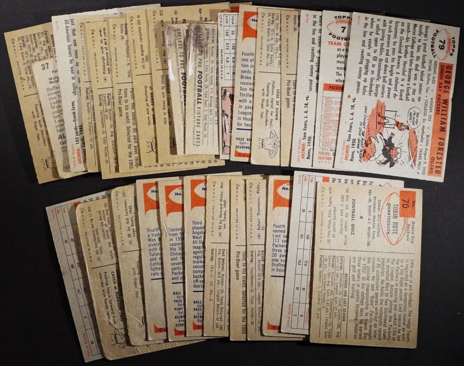 Includes John Martinkovic, Fred Cone, Tobin Rote, and more. Various conditions, duplicates possible