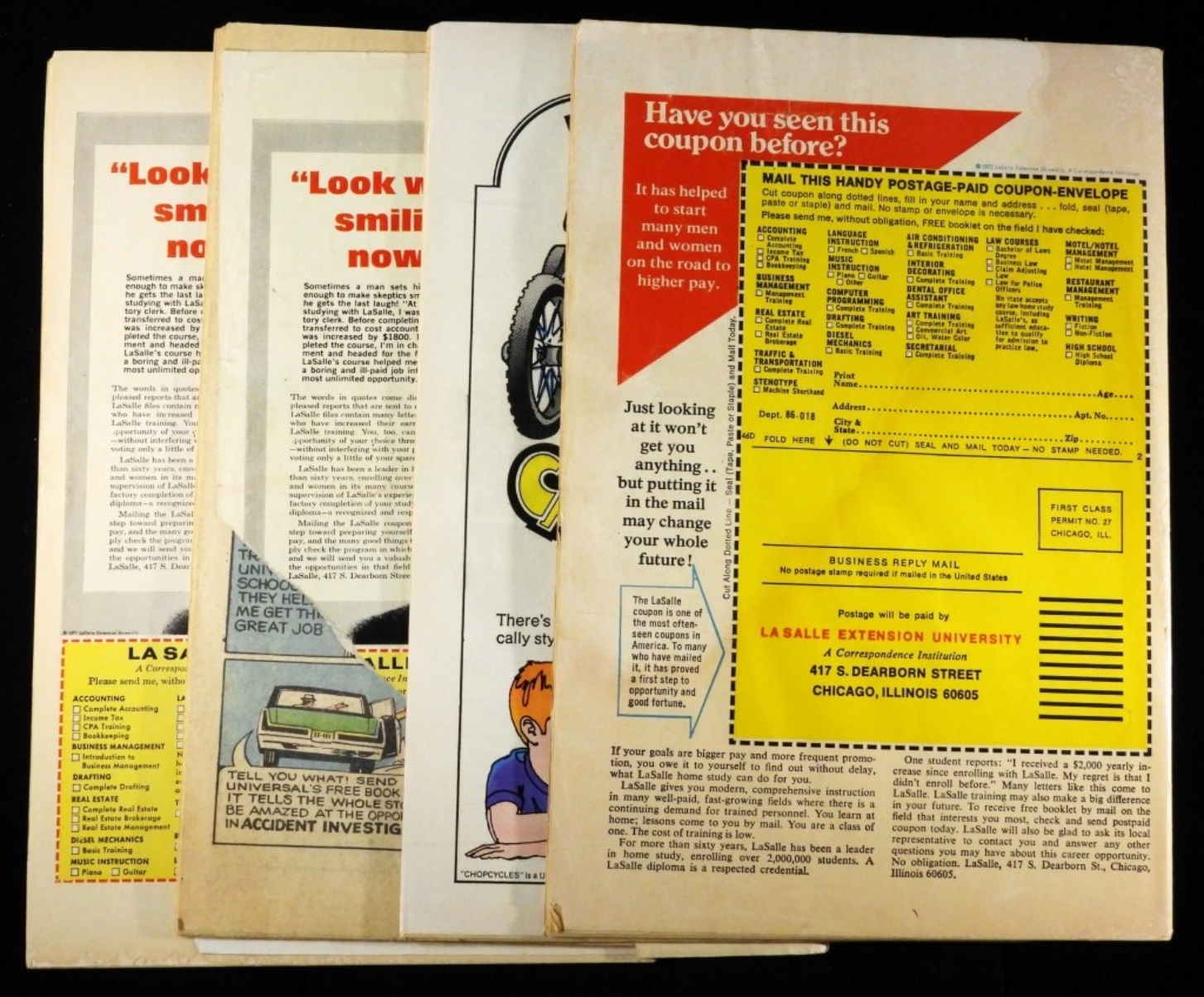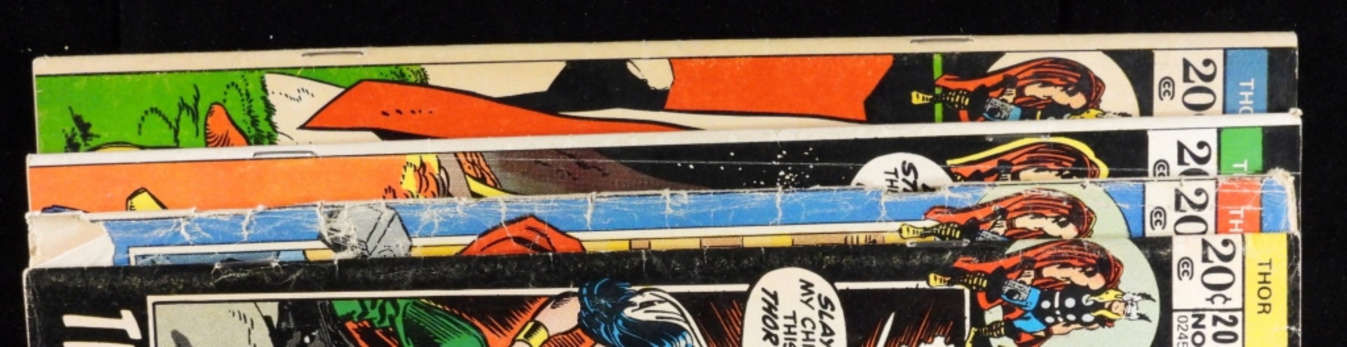 Year 1973. Comics are in fair to very good condition. #206 is missing some of the back cover and is coming off the spine. The other comics have creasing and some watermarks. 20-cnet issues