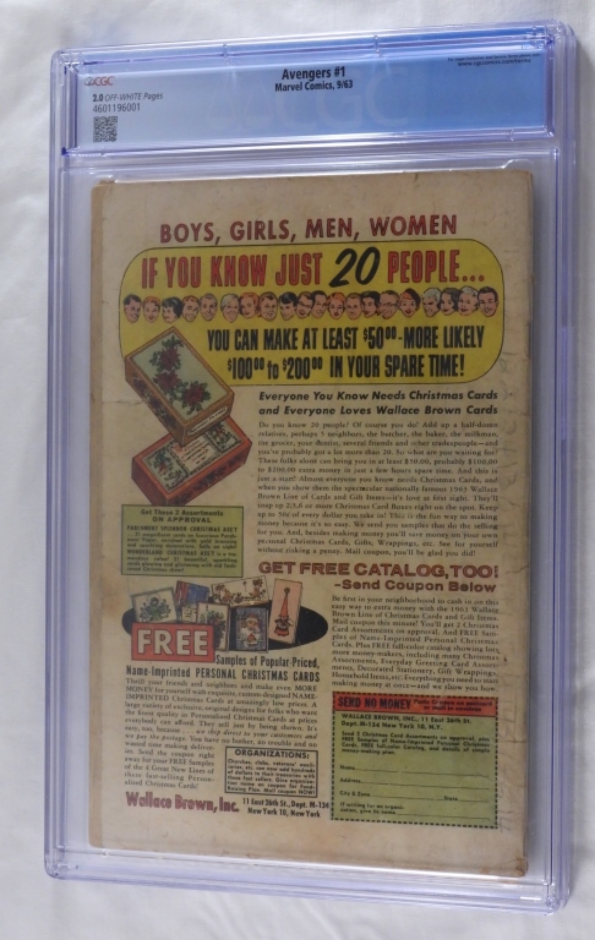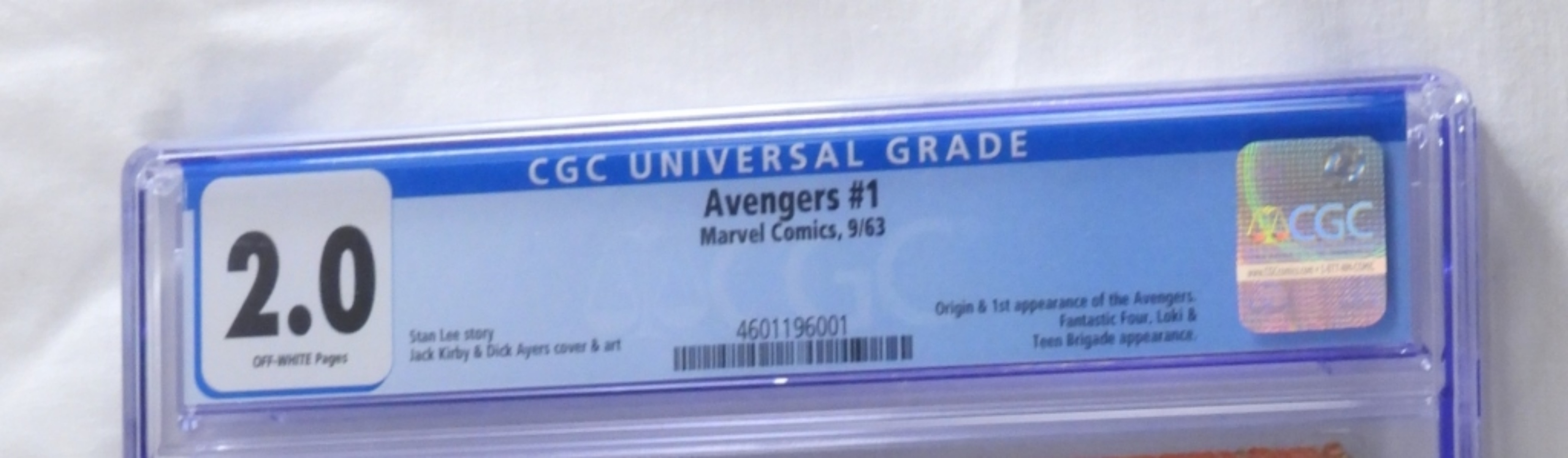 2.0 CGC 1963 Avengers #1 Marvel Comics, 9/63. White pages. Origin and 1st appearance of the Avengers, Fantastic Four, Loki & Teen Brigade appearance.