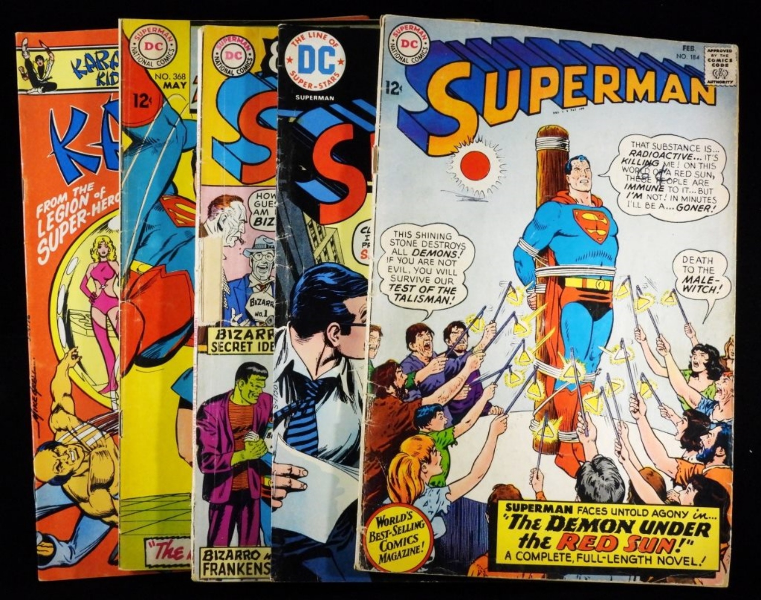 Superman #277- VG, Superman # 184- Good, Giant Superman #202- Good, Adventure Comics #368- VG, and Karate Kid #1-Fine