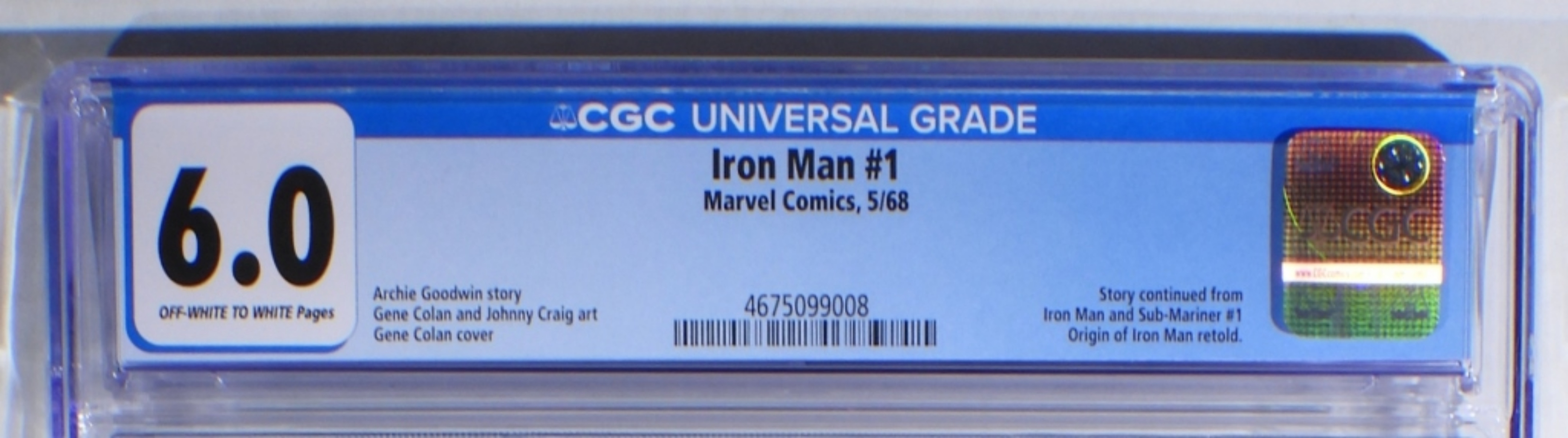 6.0 CGC. Iron-Man #1 Marvel Comics, 5/68. Off-white to white pages. Origin of Iron Man retold