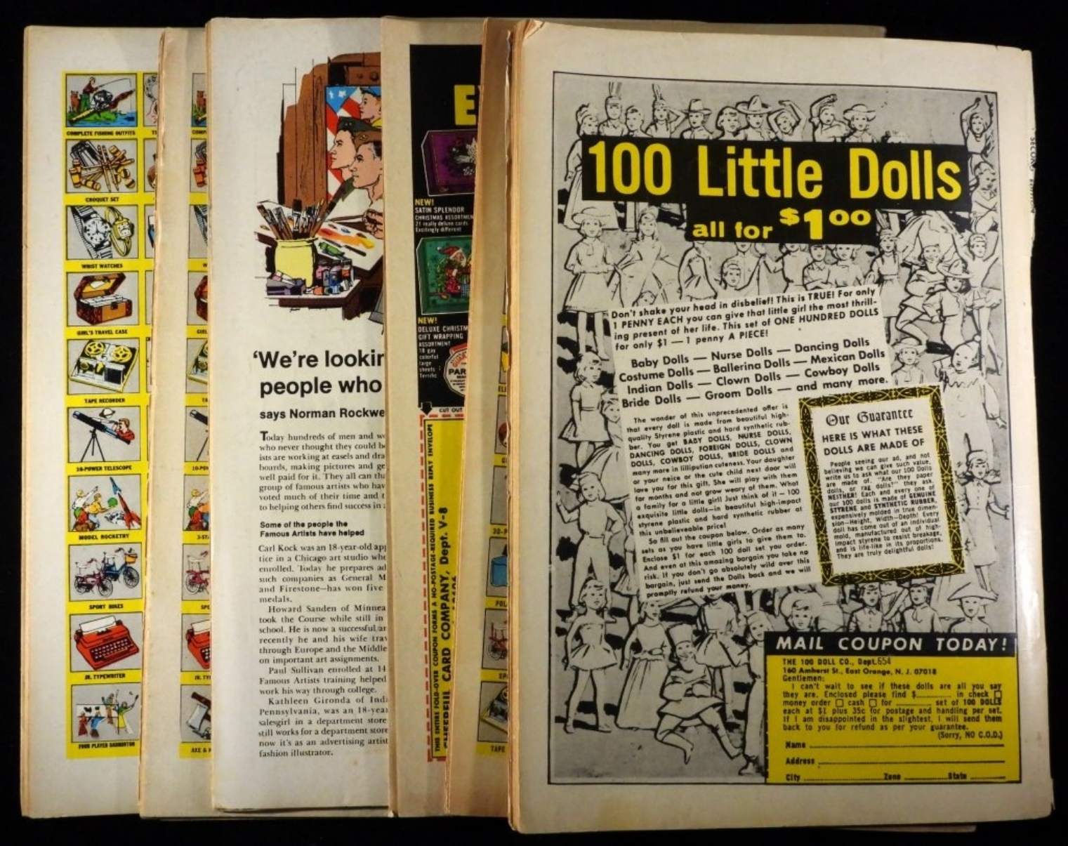 Jughead #175, Archie & Me #30, Archies Joke Book #137, Archies Joke Book #123, Reggie & Me #35, Everything’s Archie #2. Various conditions. 1968-1969.