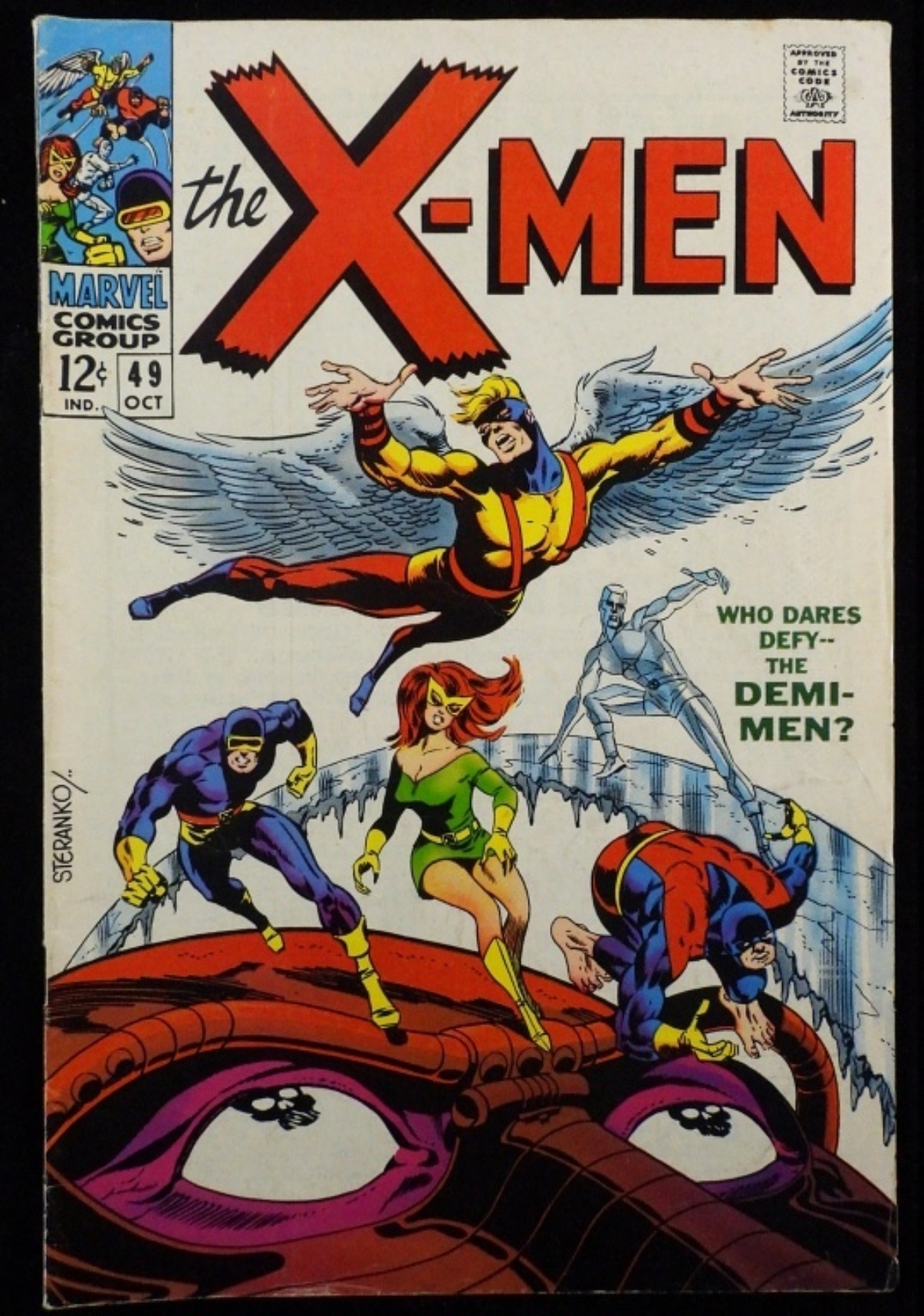 G/VG condition 1968. Marvel #49. Creasing, discoloration. 1st appearance of Lorna Dane, daughter of Magneto, who later takes the name Polaris. 12-cent issue