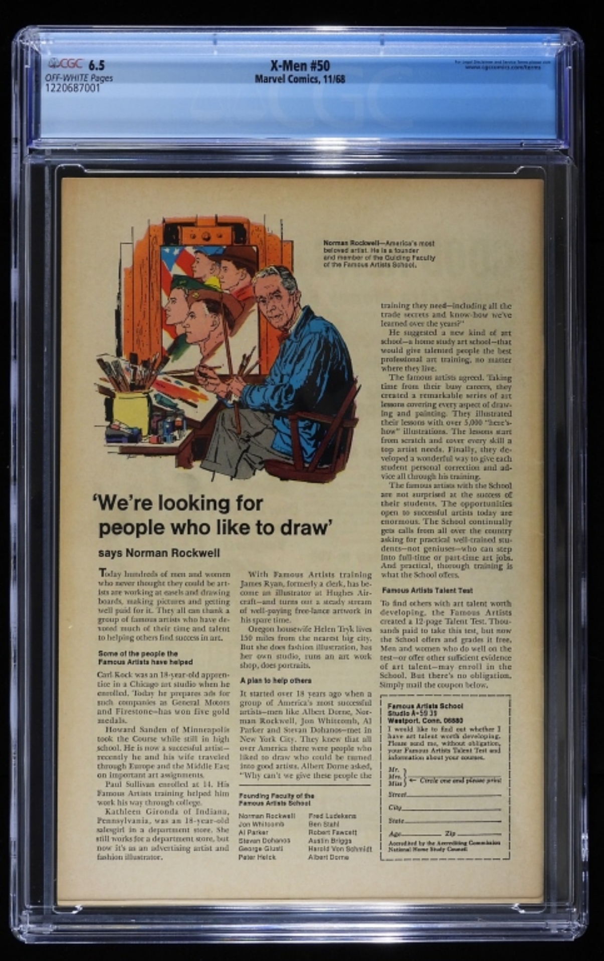 6.5 CGC, off-white pages. X-Men #50 Marvel Comics, 11/68. 2nd appearance of Polaris