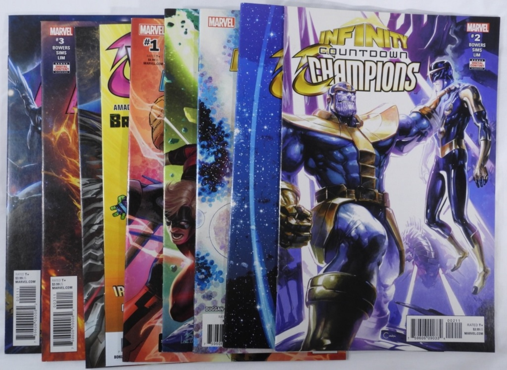 Infinity Countoown 1, 2, & 4. Champions #22. Infinity Countoown Prime #1. Captain Marvel #1. Adam Warlock #1. Champions 1-2