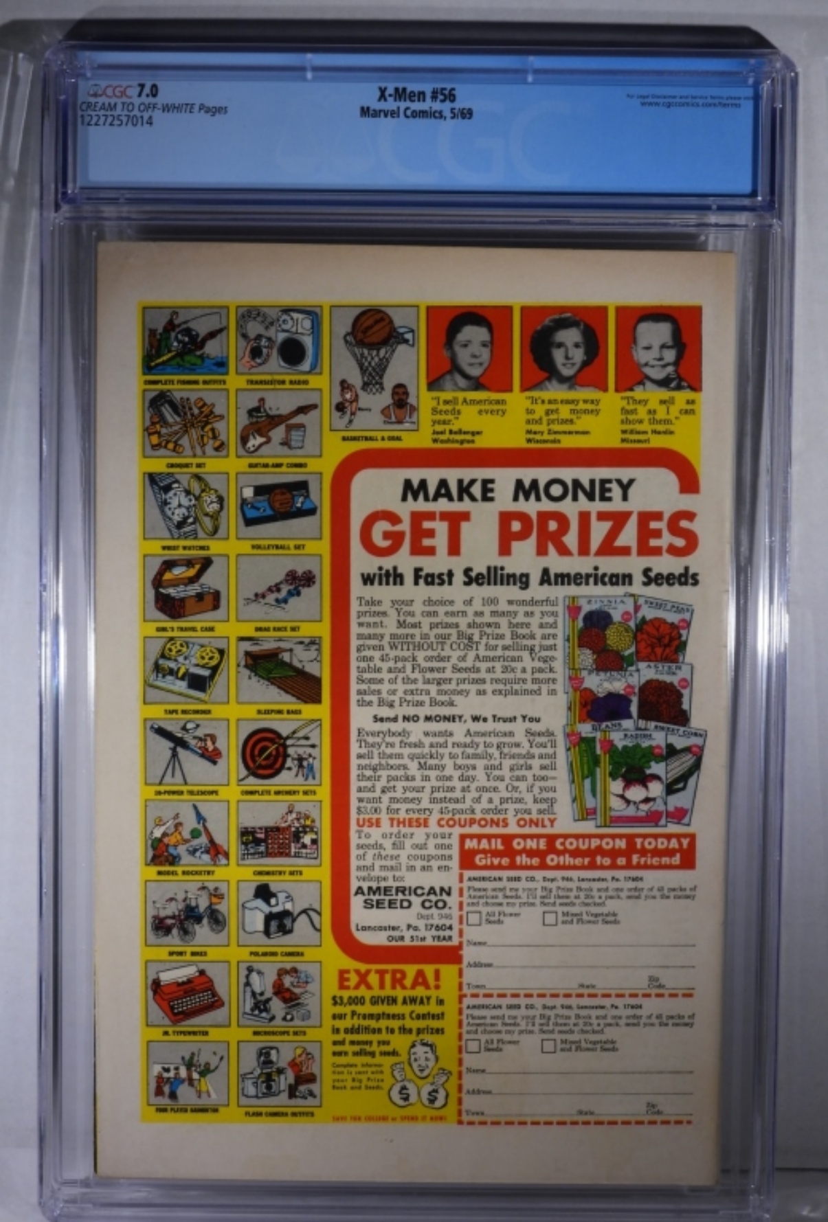 7.0 CGC. X-Men #56 Marvel Comics, 5/69. Cream to off-white pages. 1st appearance of the Living Monolith. Origin of Angel