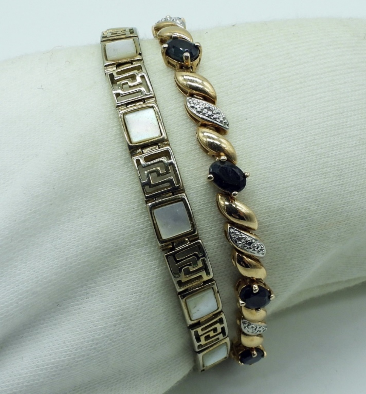 Two gold tone sterling bracelets, both 7″ long. (14.2 dwt)