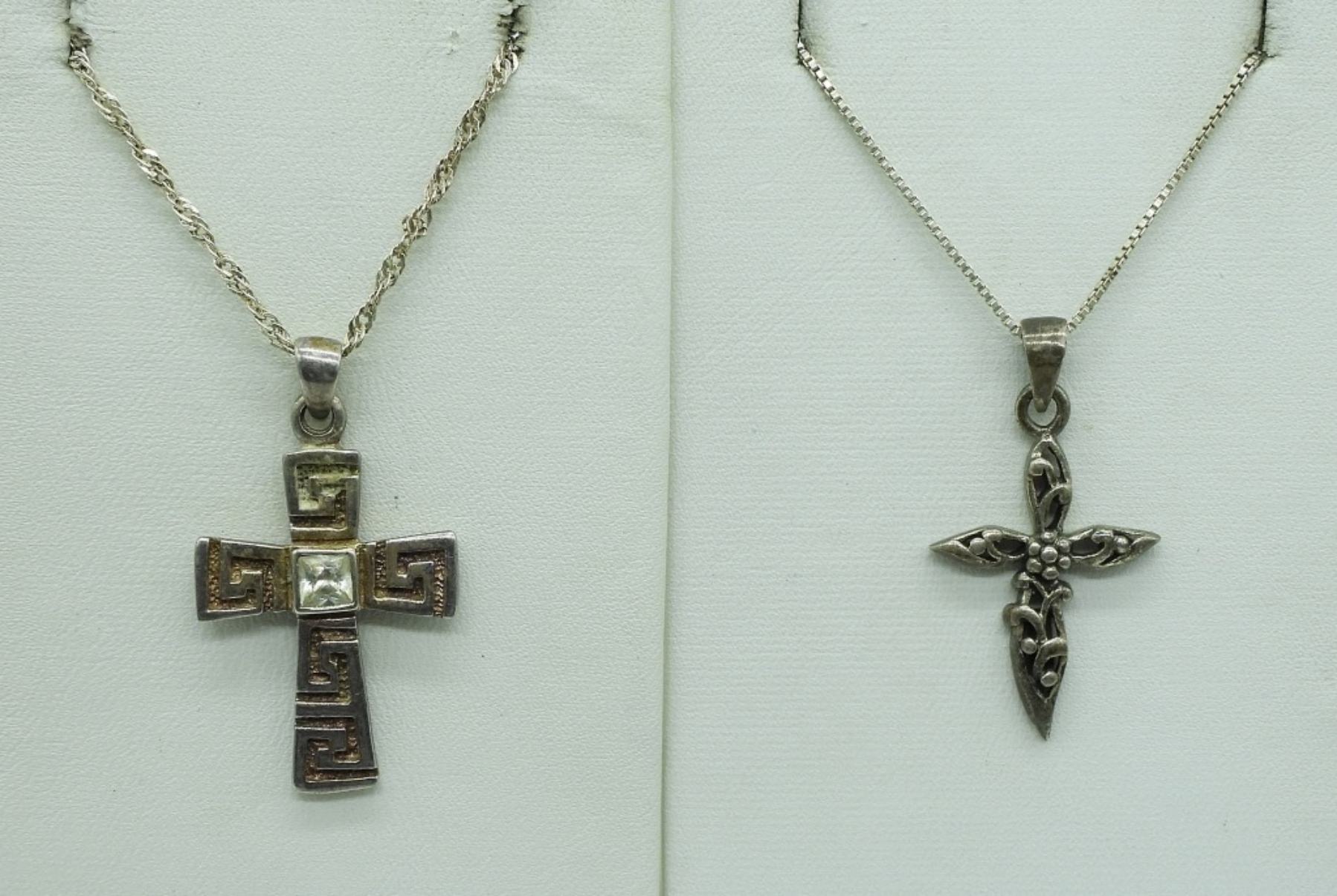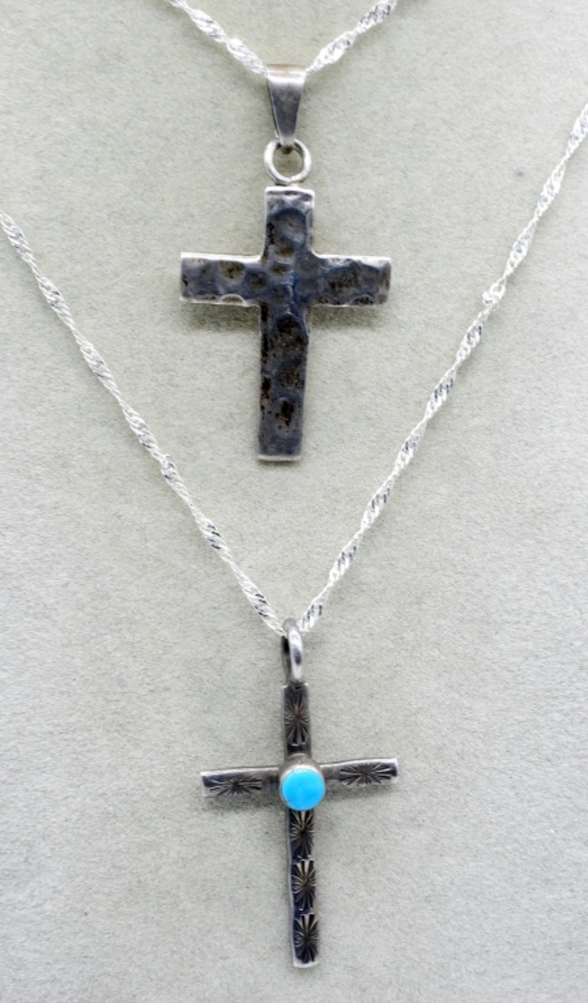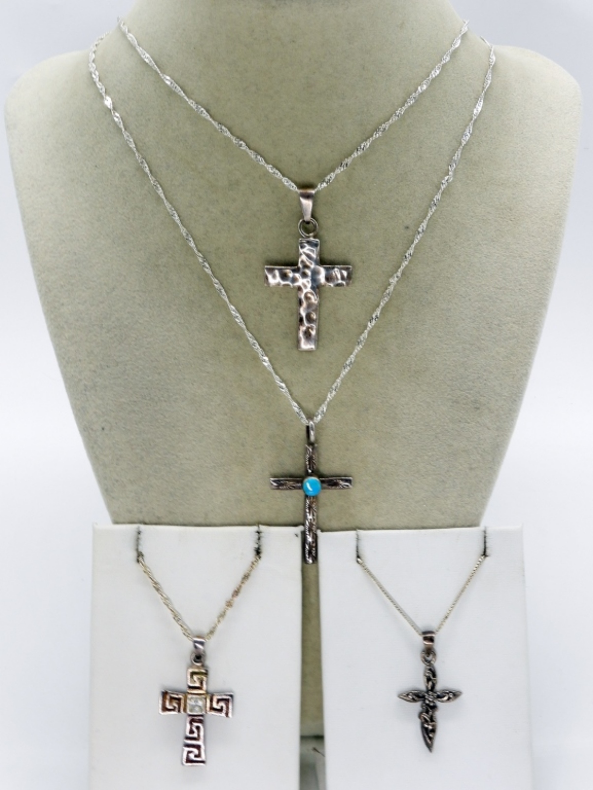 Four sterling religious cross necklaces, 18″ & 20″. (13.2 dwt)