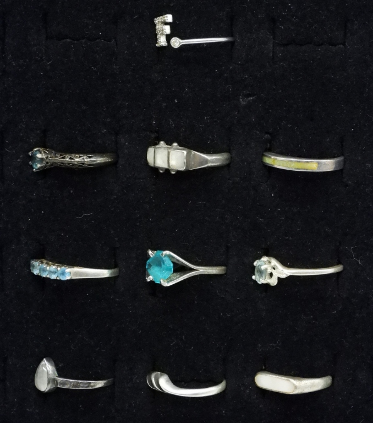 Ten petite sterling gemstone rings, sizes 6-9 (13 dwt)