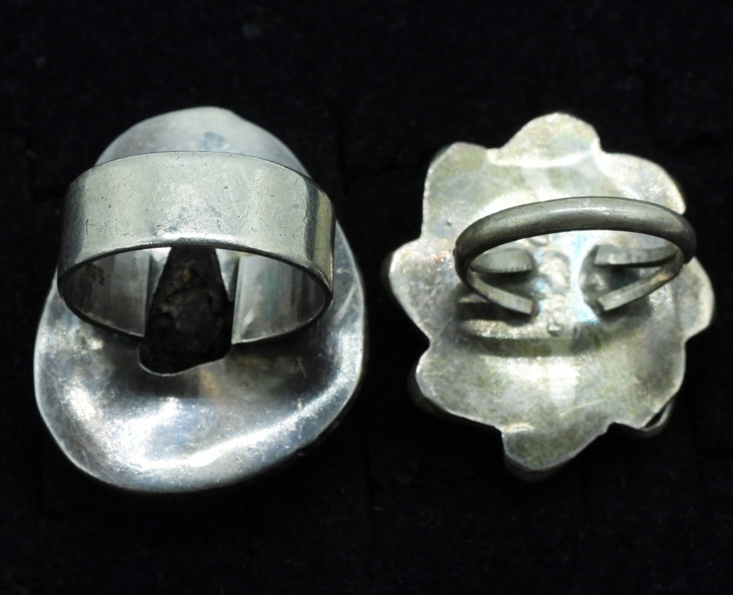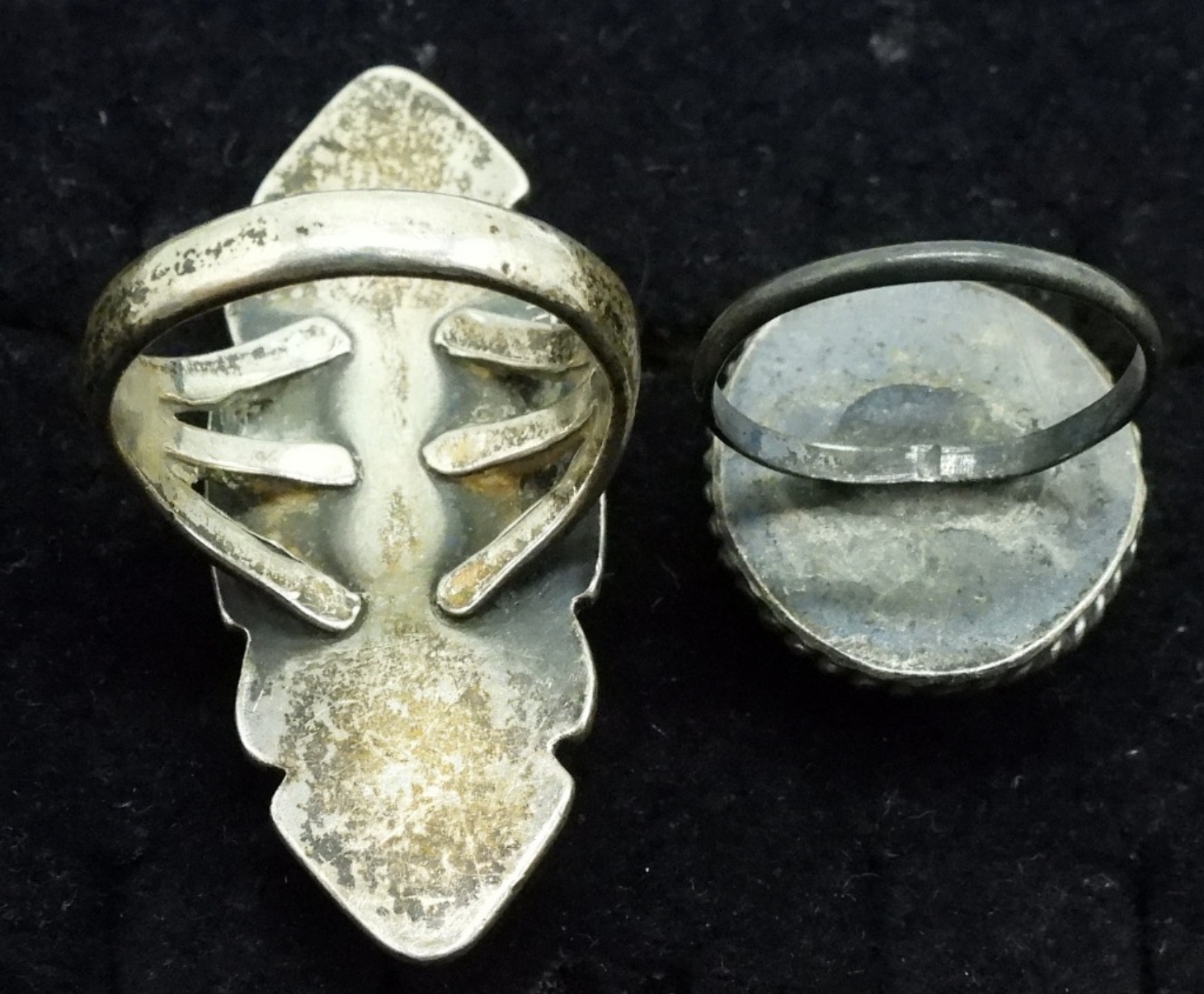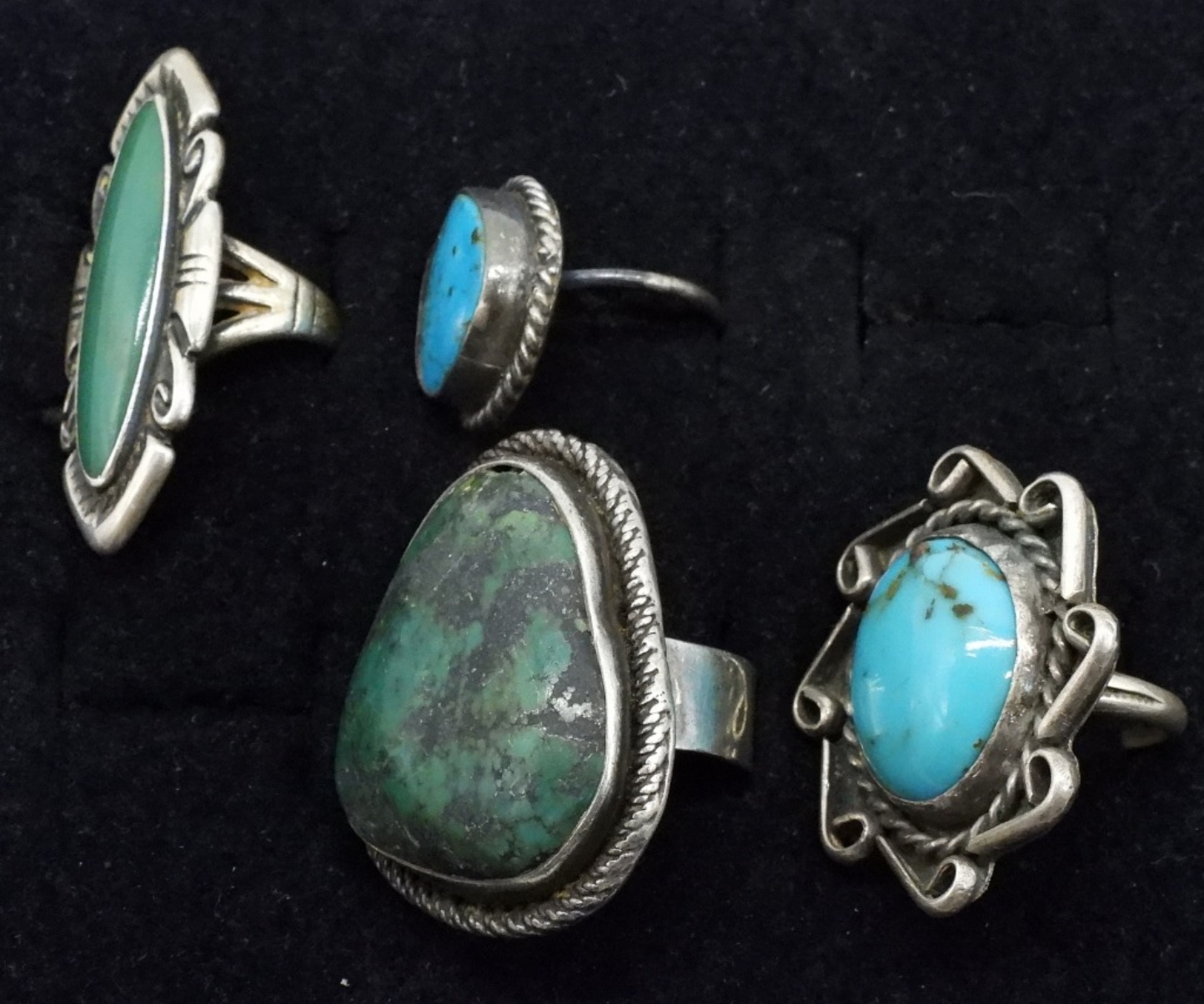 Four sterling rings with old turquoise gemstones. Sizes 4, 5.5, 6, 9. (22 dwt)