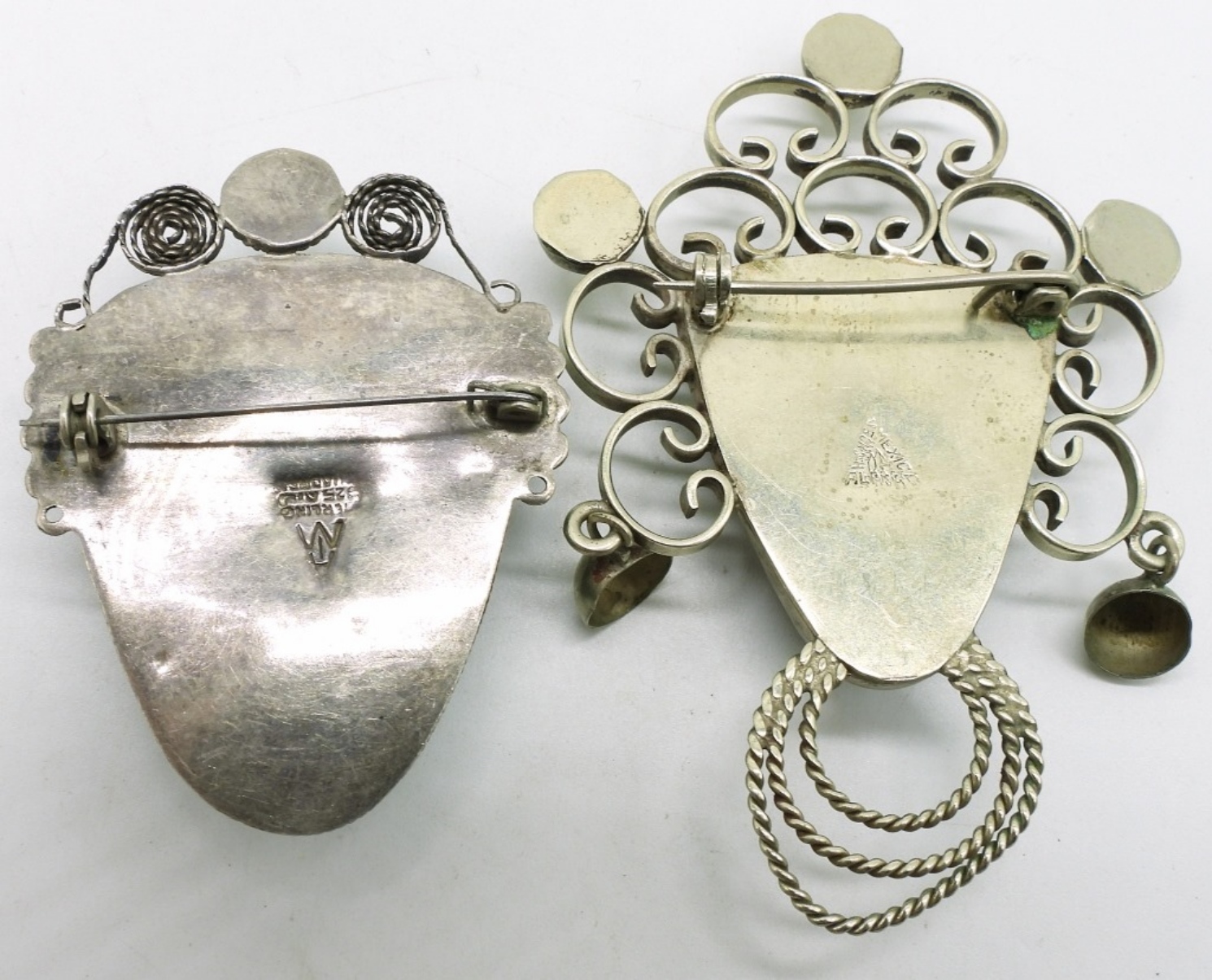 Two sterling green onyx brooches, 2″ – 3″. (19.5 dwt)