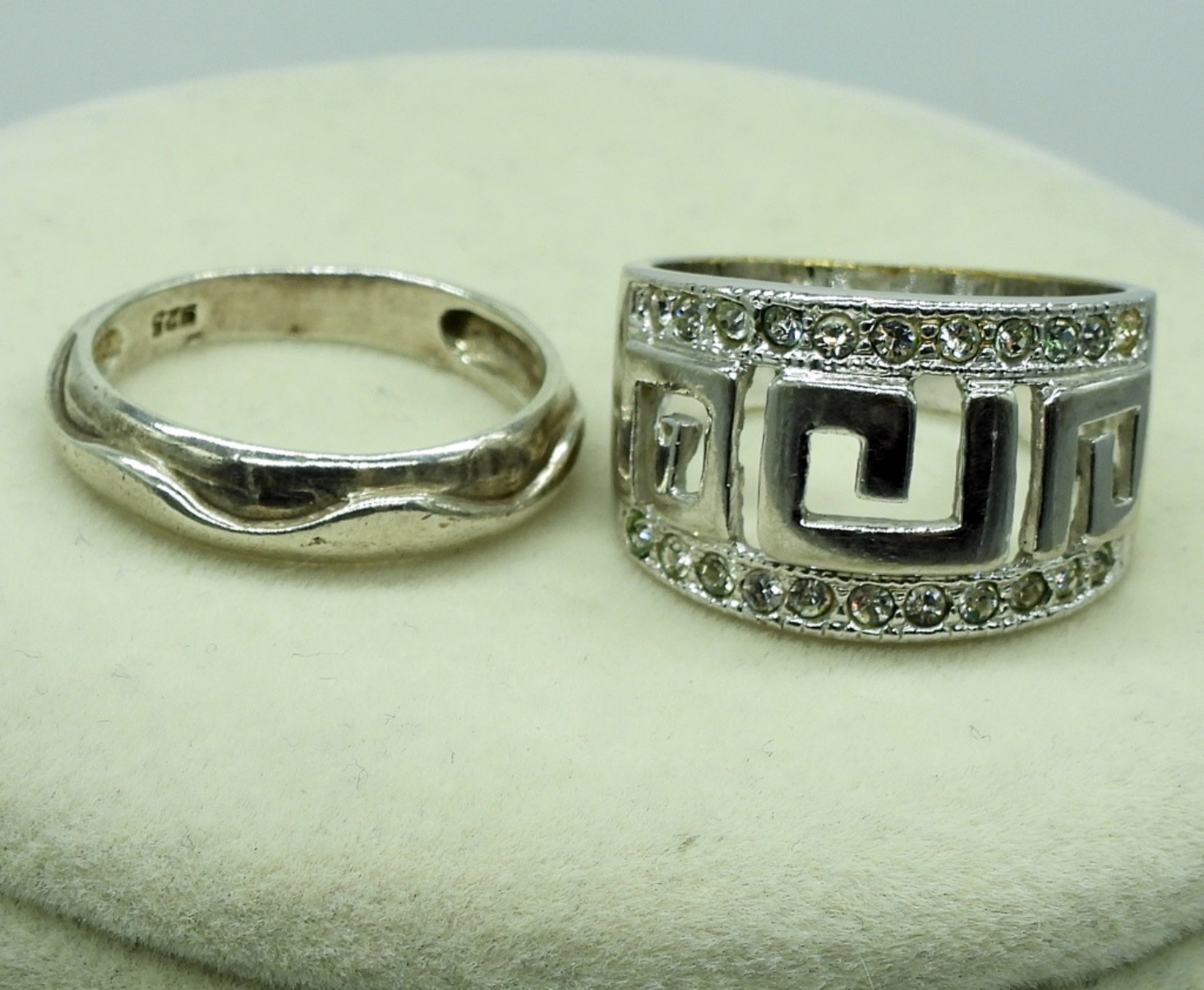 Sterling silver circles necklace, 17″ long. Two sterling rings, size 8 (20 dwt)