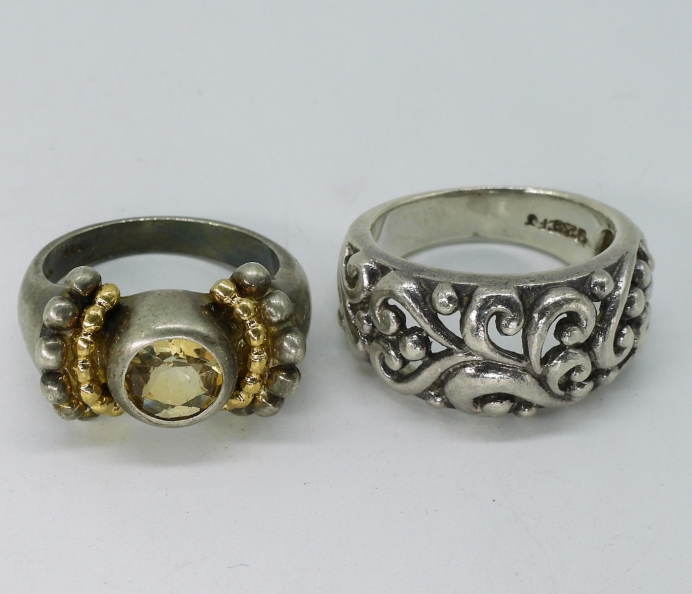 Vintage sterling Jasper gemstone necklace, 18″ long. Rings are size 6. (13 dwt)