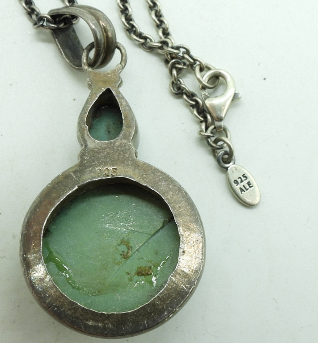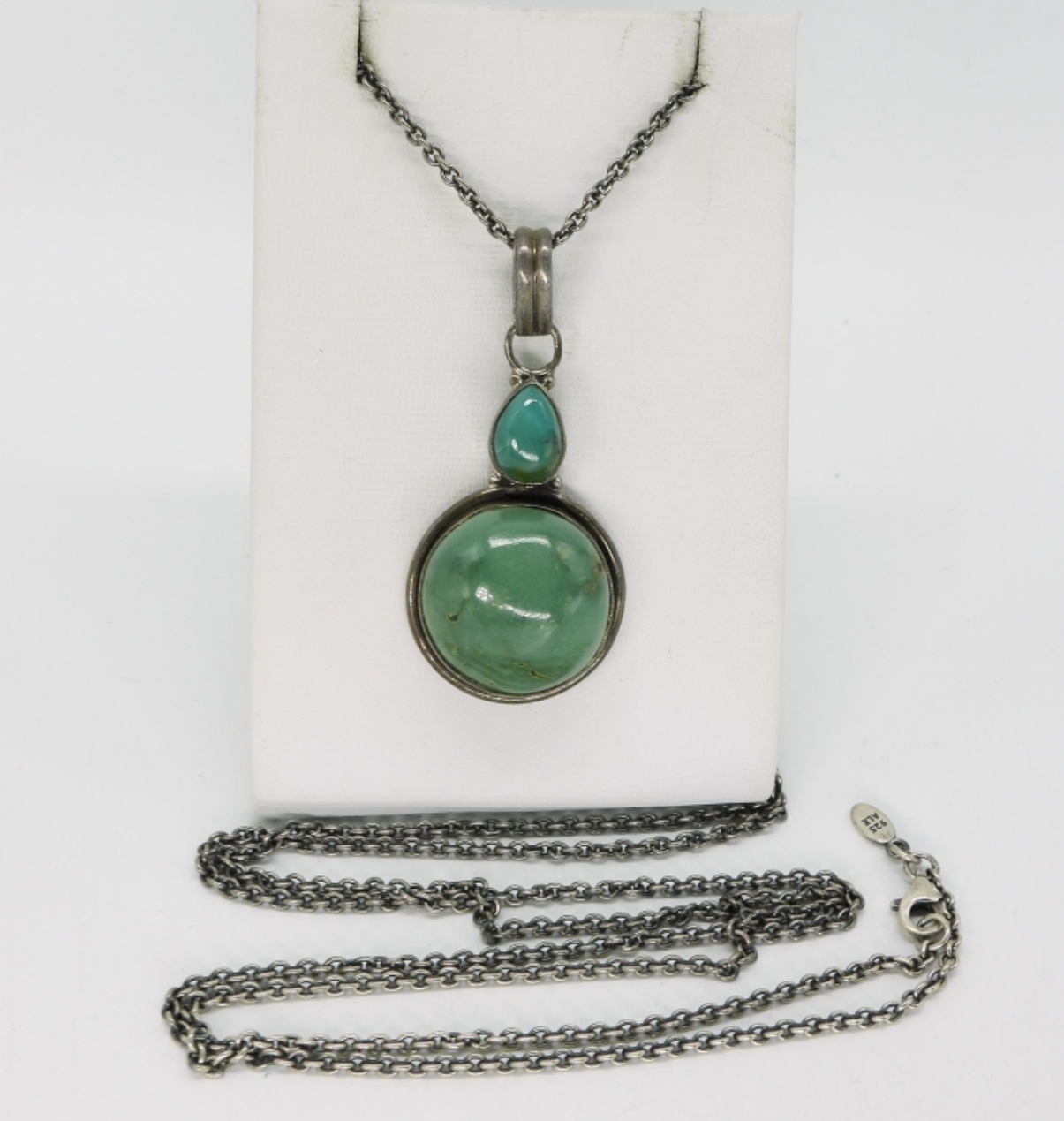 Vintage turquoise pendant, 2″ long on a sterling 36″ chain. (11.5 dwt)