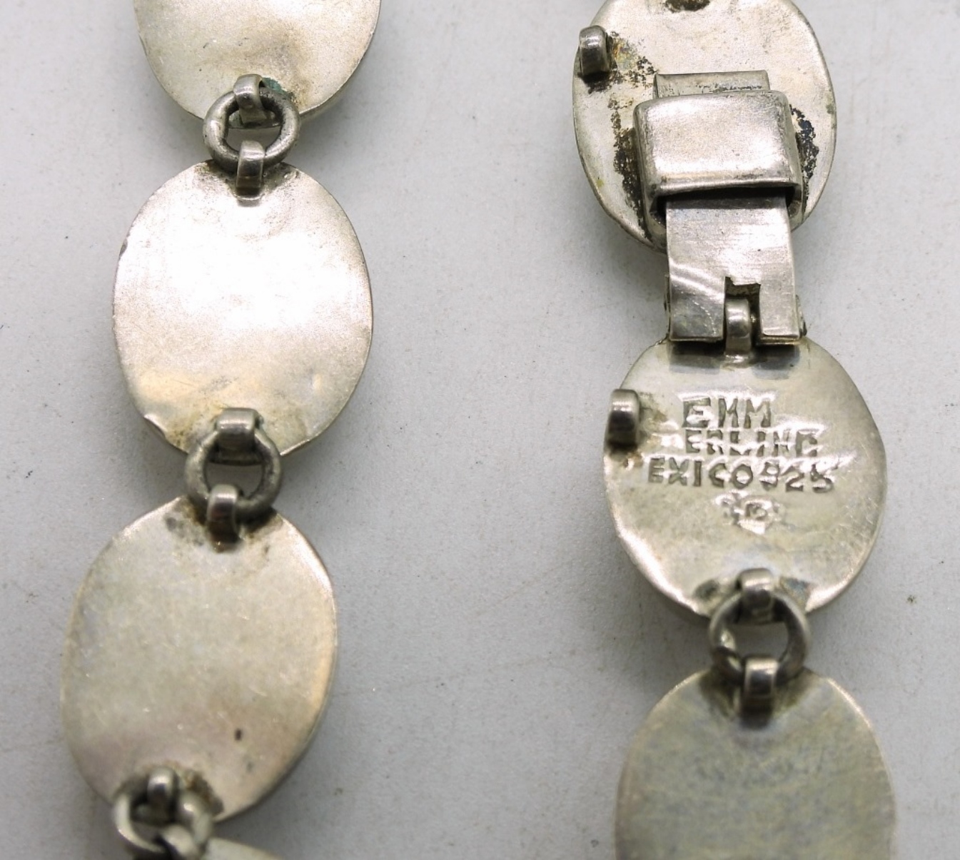 Two sterling bracelets. One with amethyst, tigers eye, lapis lazuli & other unidentified stones. Both are 7.5-8″ long. (33.6 dwt)