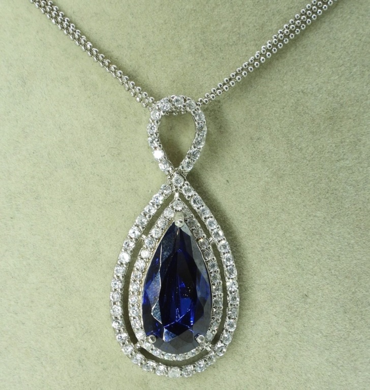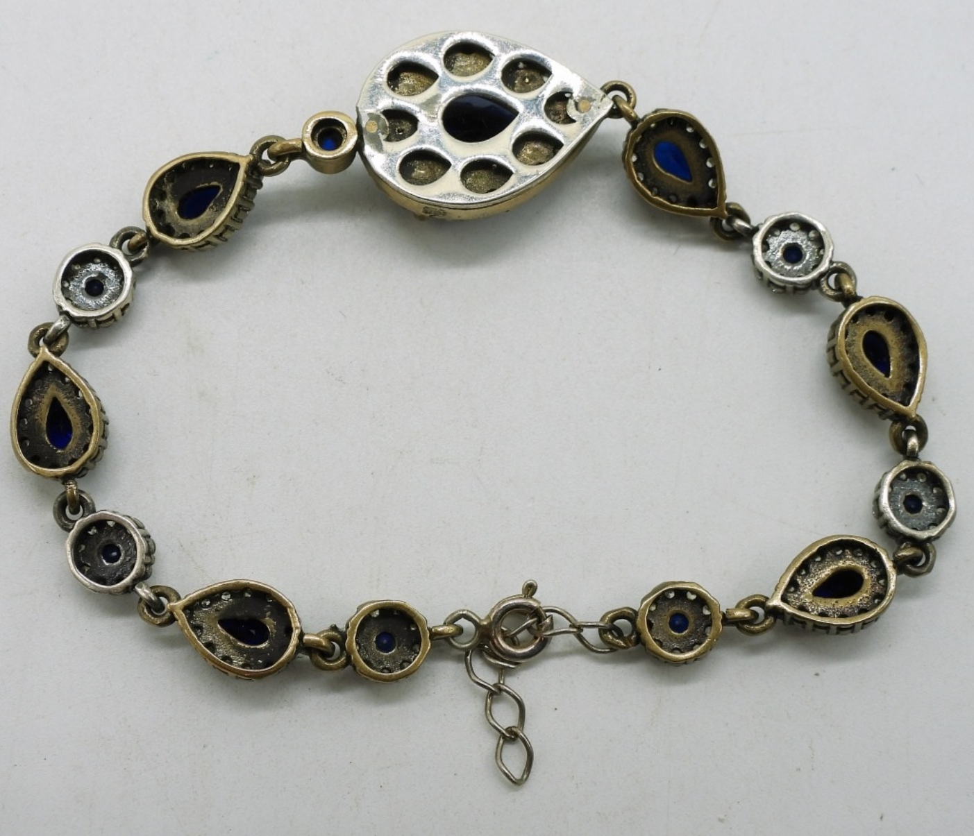 Simulated sapphire sterling necklace and bracelet. Necklace is 18″. Bracelet is 7-8″ adjustable. (15.8 dwt) (6x4x2)