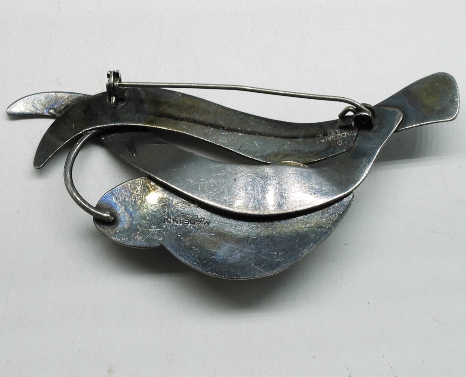 Vintage sterling brooch, Made in Israel with large unusual stone (no idea what it is). (14 dwt) (6x4x2)