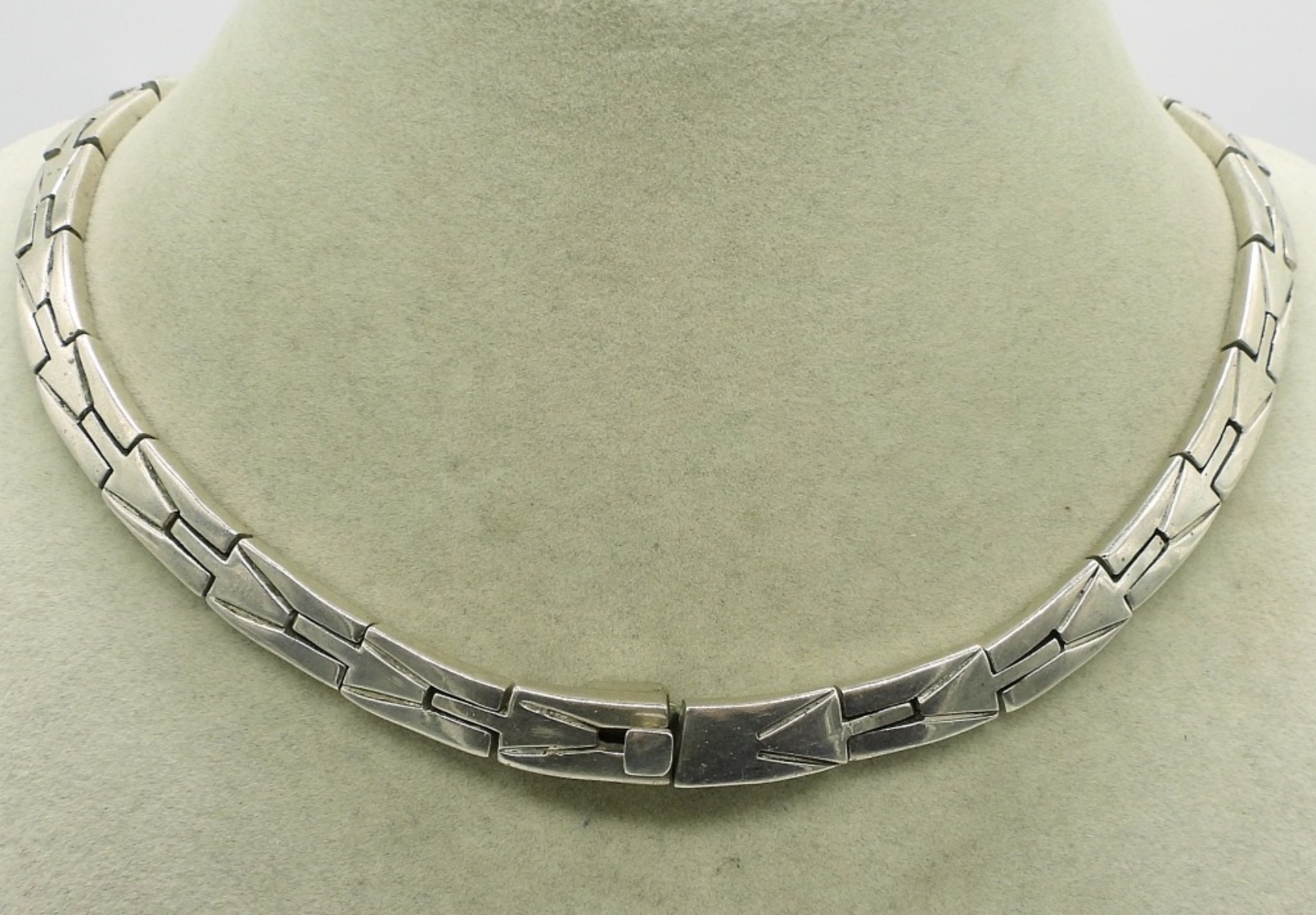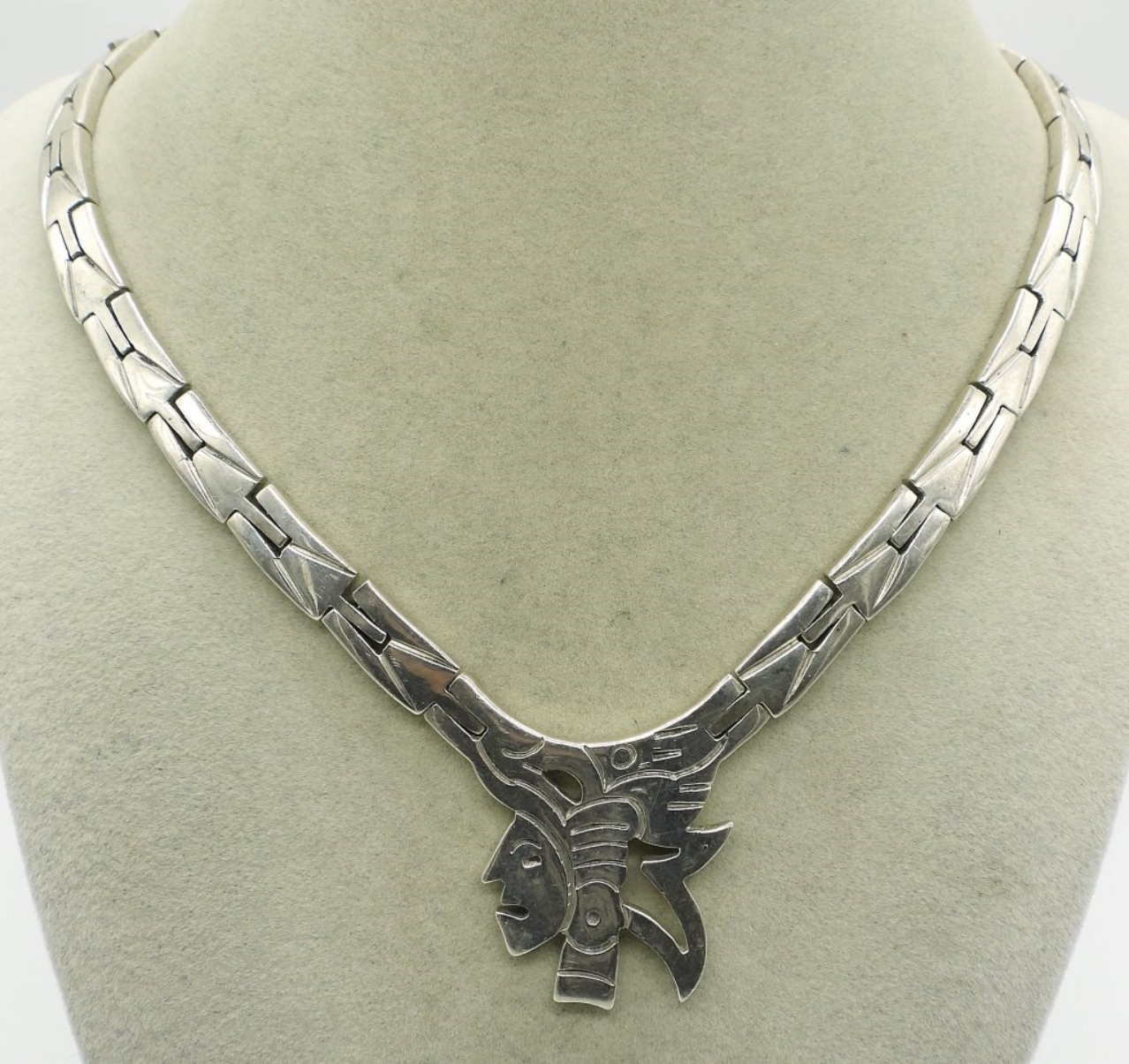 Incredible, Heavy, Thick Taxco Sterling Necklace. Marked “TV-83″. 18-20”. (67.1 dwt) (6x4x2)