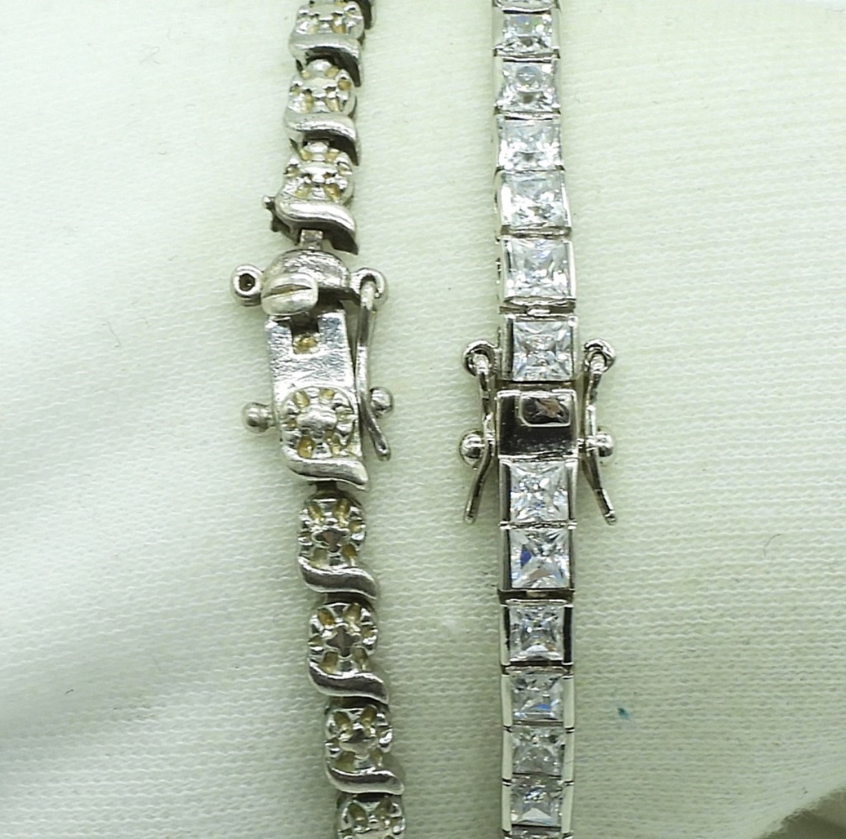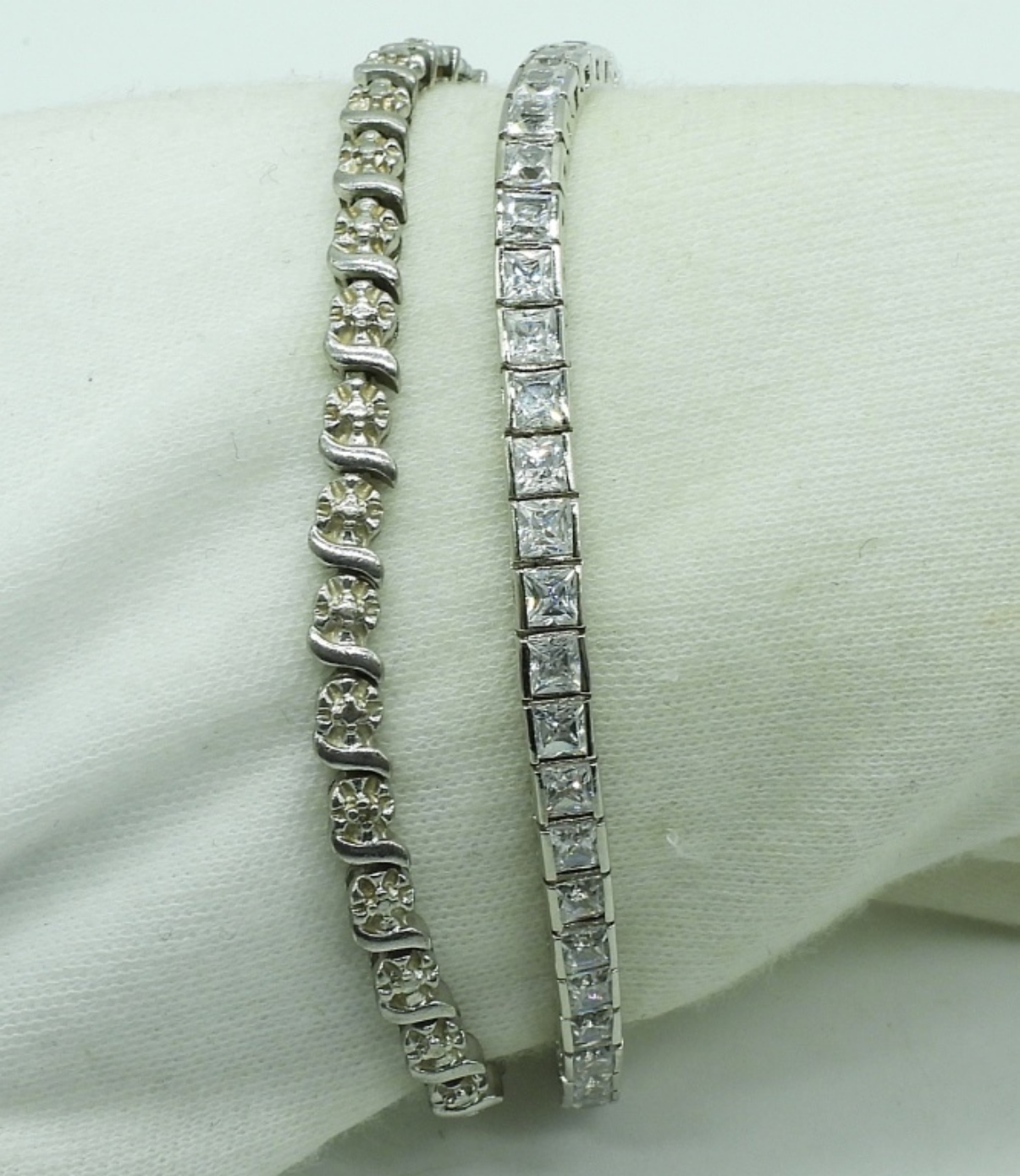 Two sterling bracelets with simulated diamonds. 7-7.5″ long. (14 dwt)
