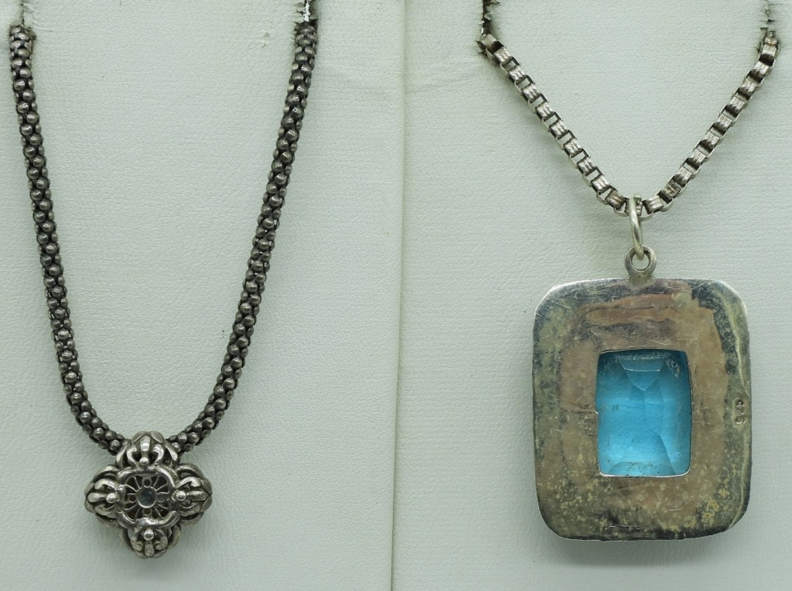 Two sterling blue topaz necklaces 16-18″ long. (18 dwt)