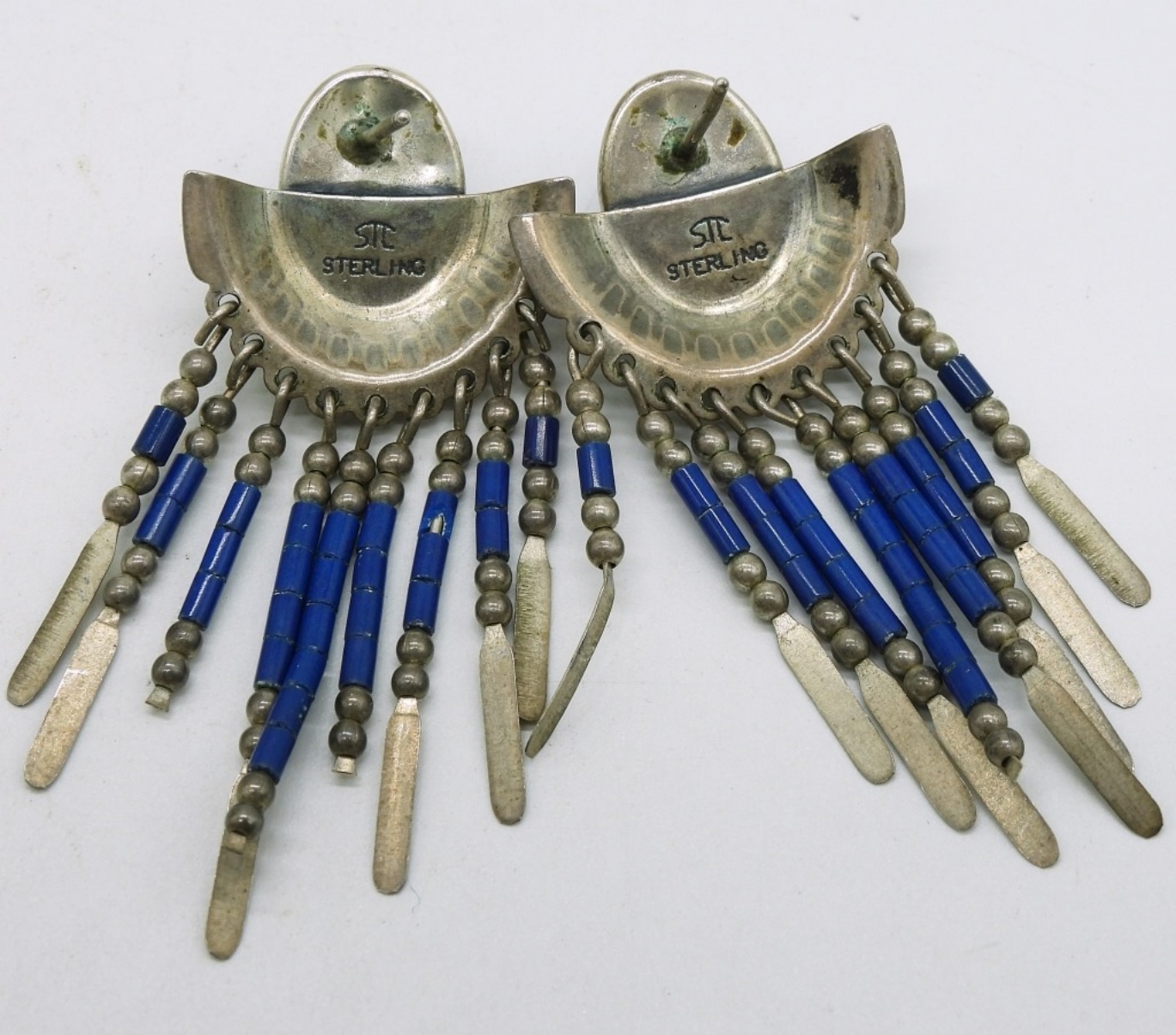 Liquid Sterling necklace, 20″ long. One pair of sterling pierced earrings with lapis lazuli, 2″ long. (22 dwt)
