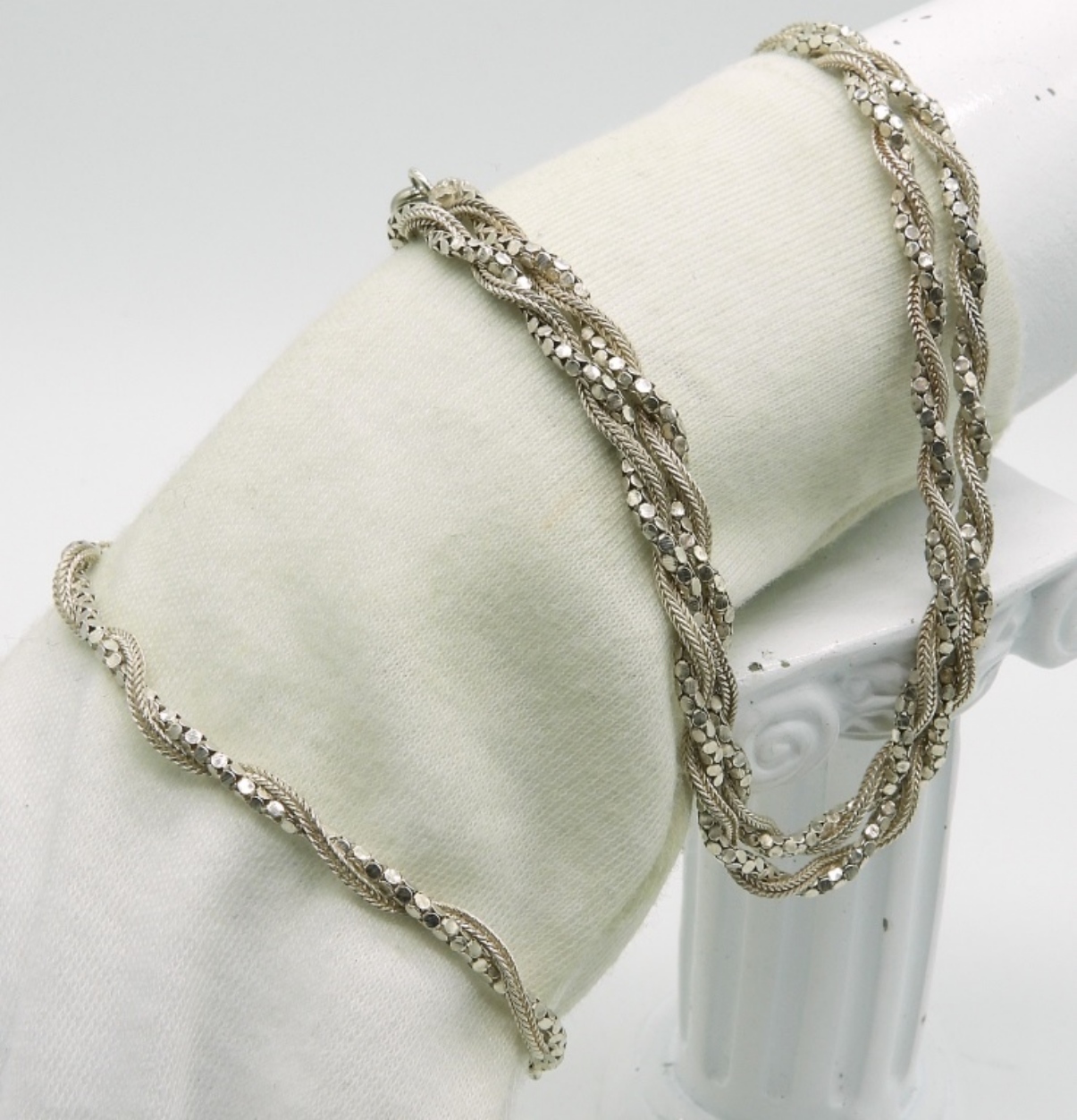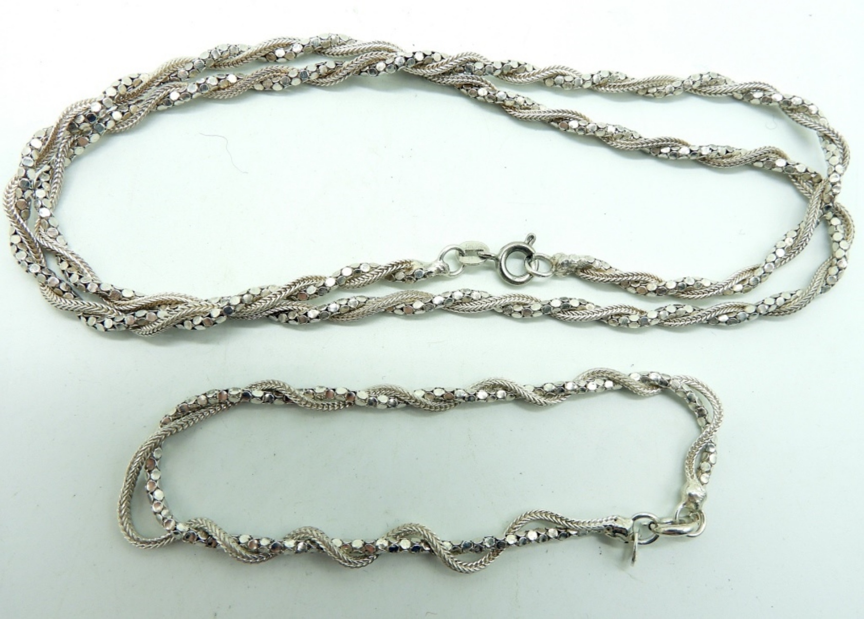 Twisted sterling, matching necklace and bracelet. 8″ bracelet, 22″ necklace. (10.9 dwt)