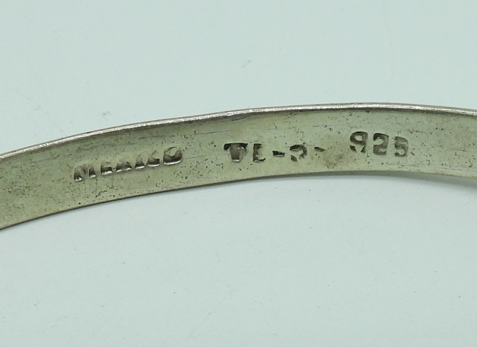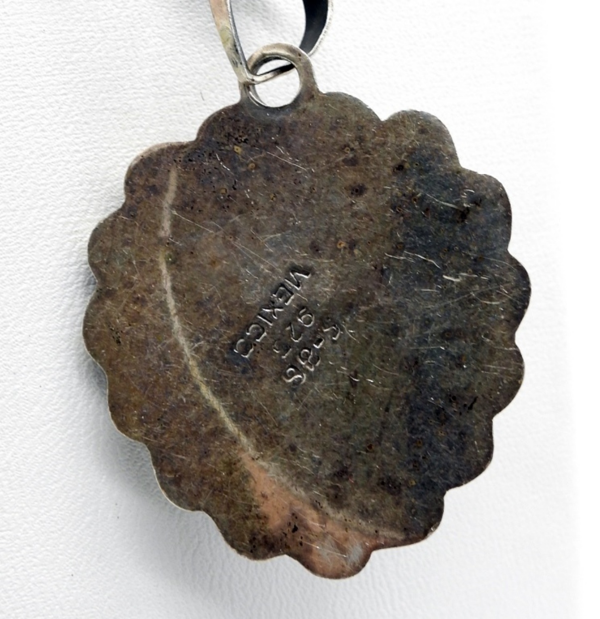 Taxco Mexico, sterling black onyx heart bracelet. Heart shaped black onyx pendant, 2″ long on a 24″ sterling chain. (20 dwt)