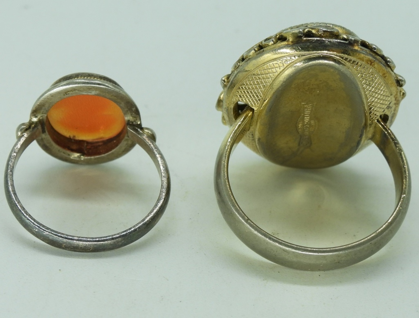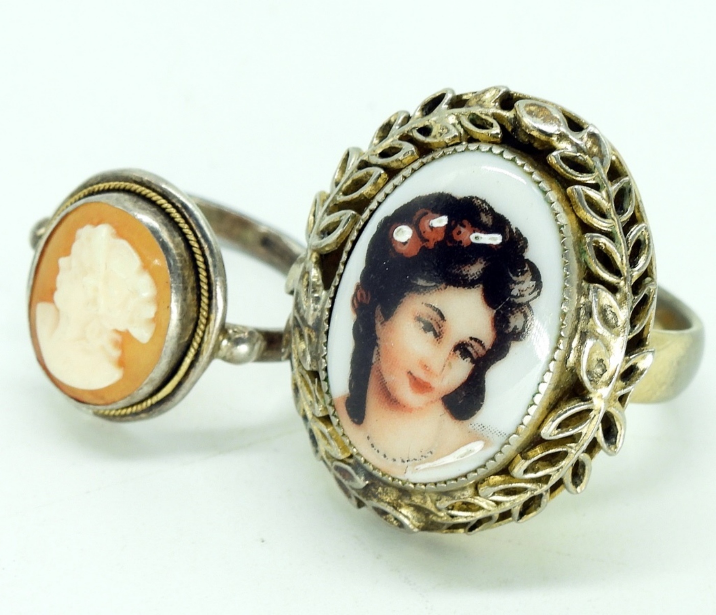 Two sterling cameo rings. Sizes 5.5 & 7. (7 dwt)