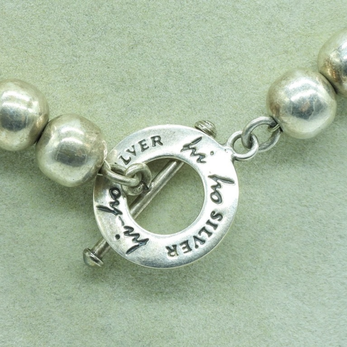Sterling beaded necklace, 16″ long. Toggle clasp, marked “hi ho silver”. (42.4 dwt) (6x4x2)