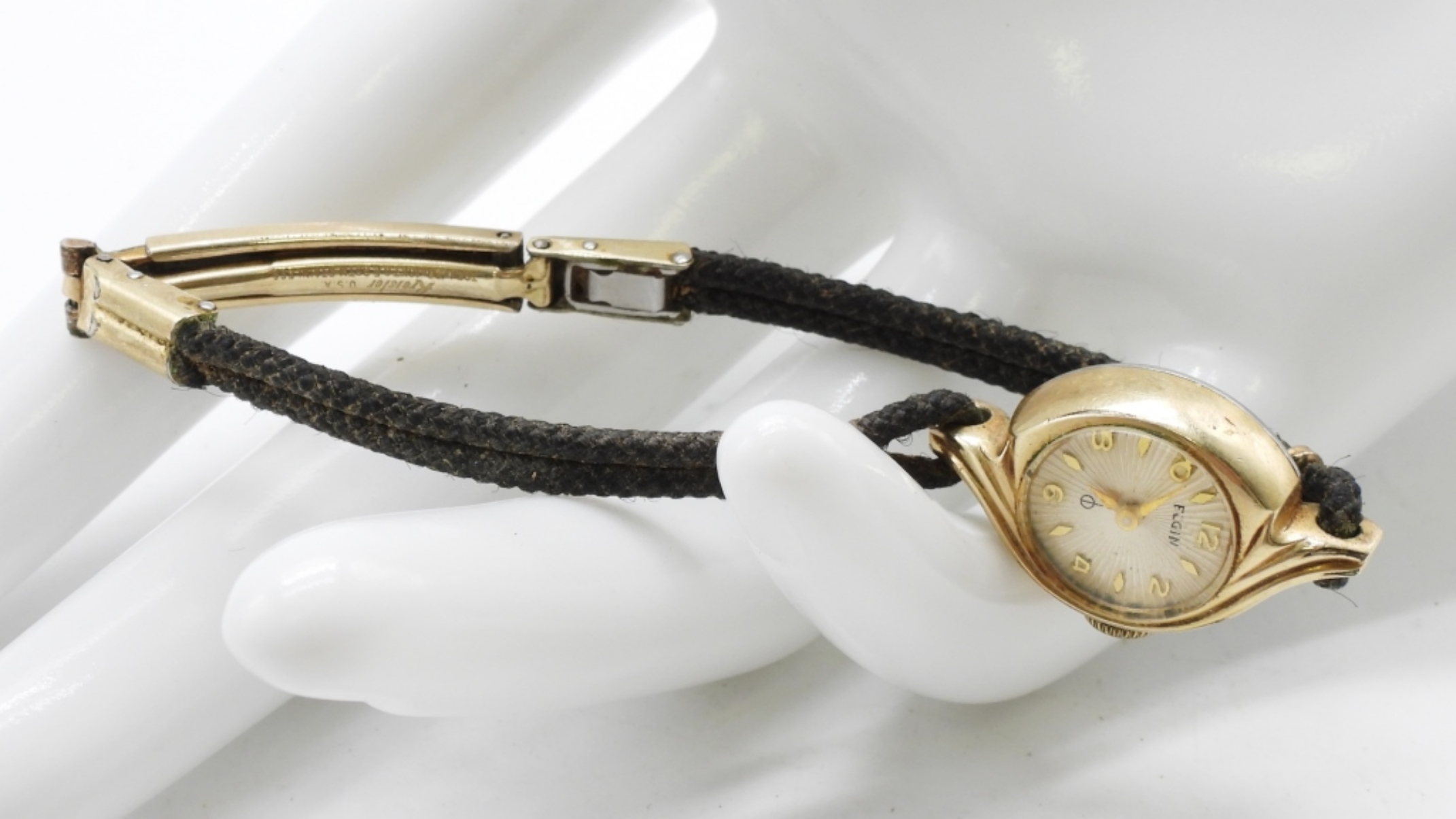 The face of the watch is Elgin 10KRG. The band is from Kreisler. Still clasp. Watches are not verified, authenticated, or tested in running condition unless specified.