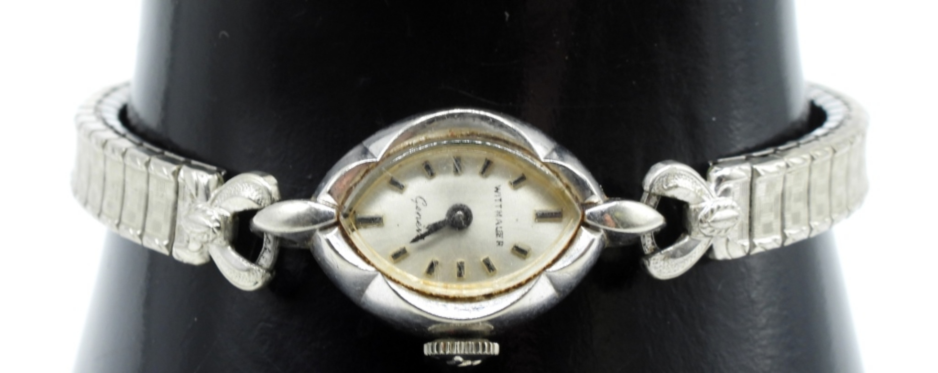 silver-tone, stretch band, 10K gold filled bezel. Watches are not verified, authenticated, or tested in running condition unless specified,