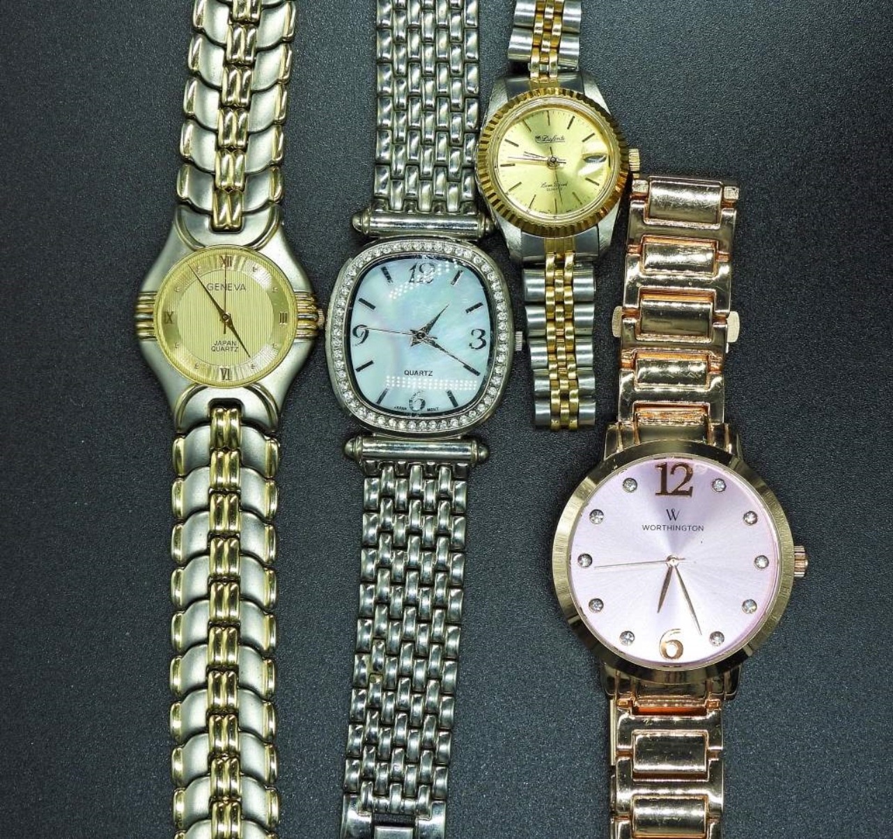 NOT TESTED AS TO WORKING OR NOT – VARIOUS BRANDS, METAL BANDS IN GOLD, SILVER & ROSE GOLD TONE