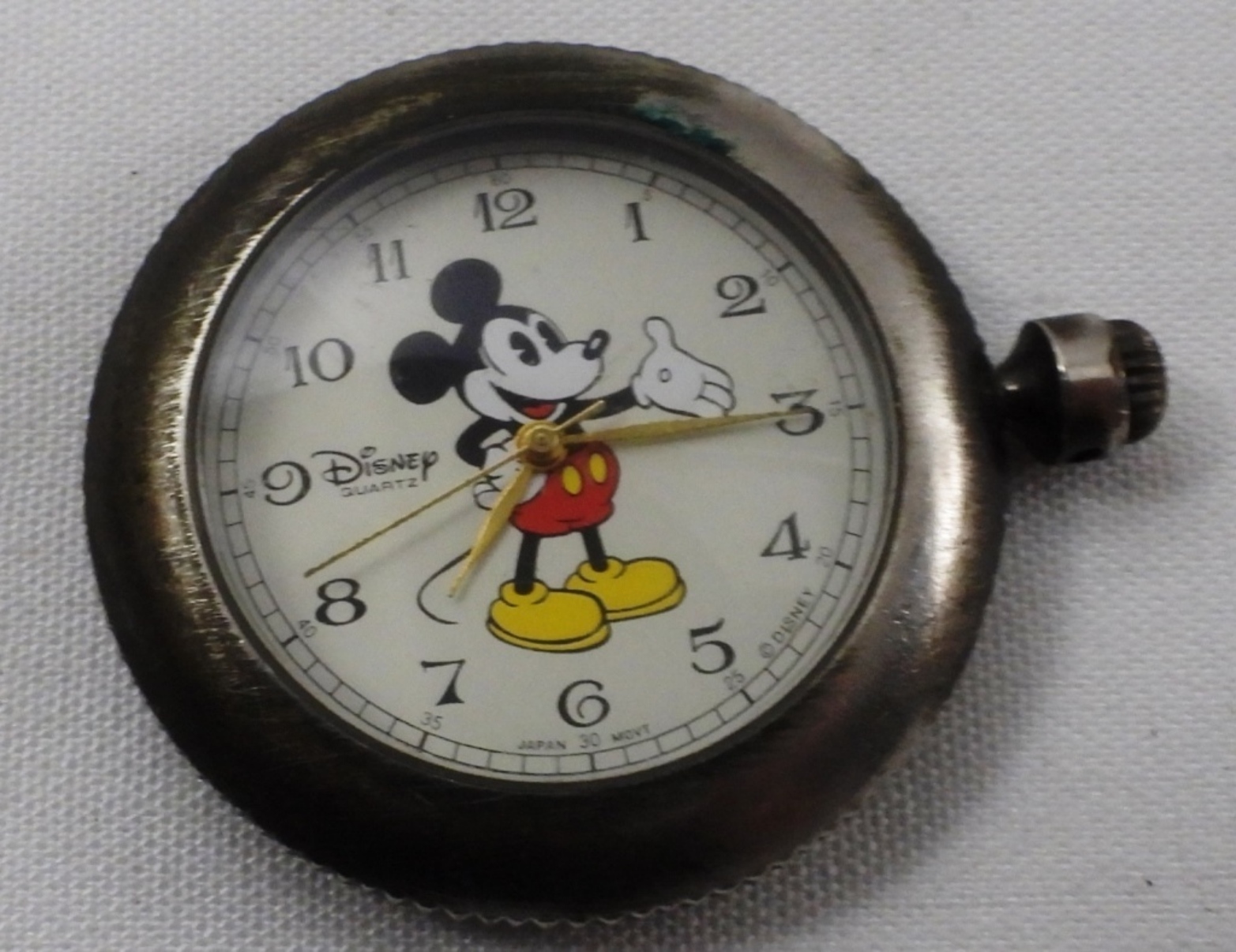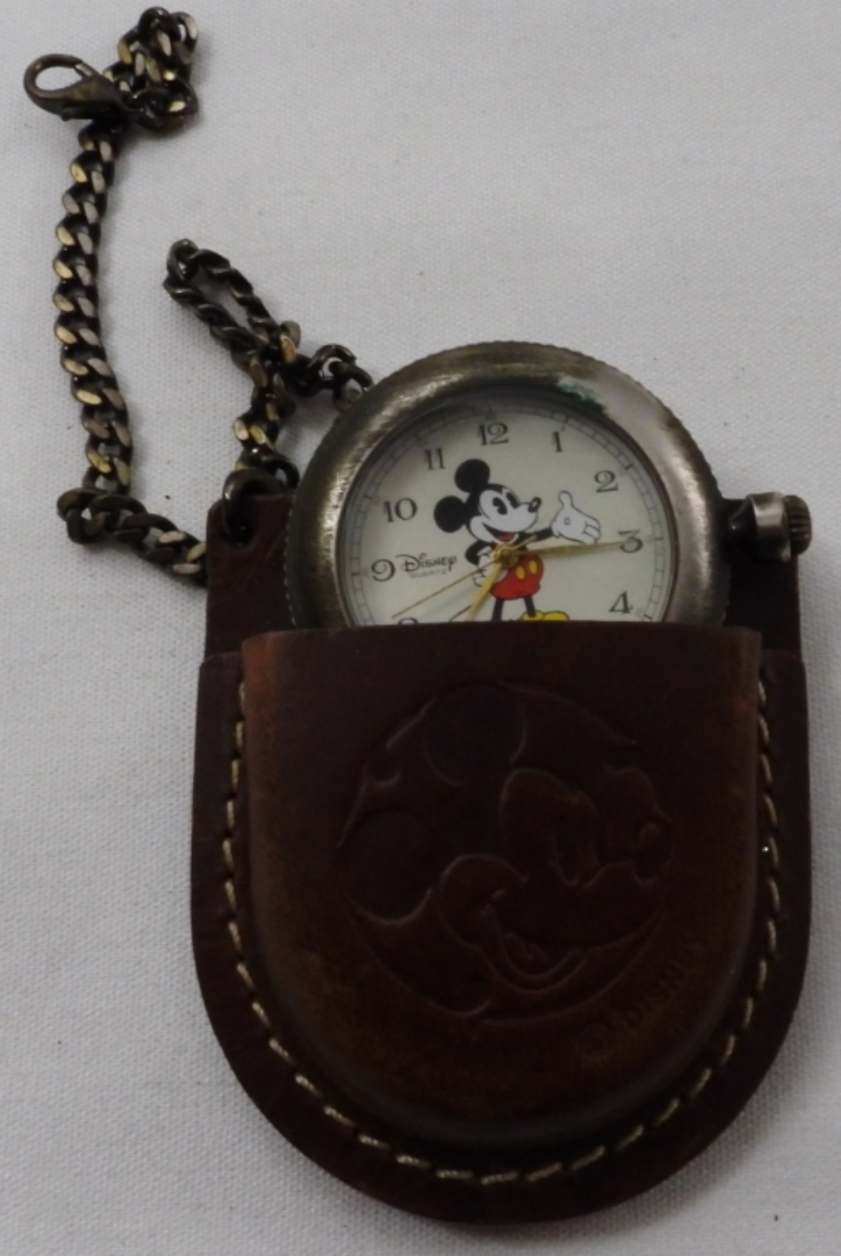 Disney, Japan 30 movt. quartz, leather case has a chain Watches are not verified, authenticated, or tested in running condition unless specified, vintage