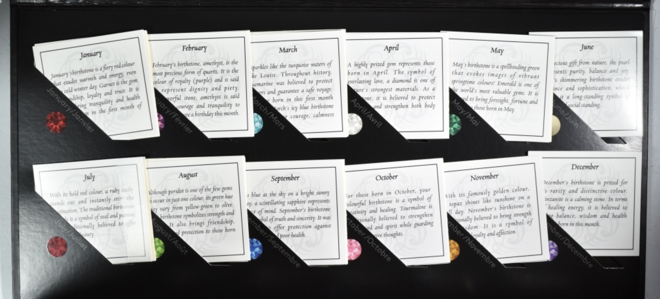 Includes 12 coins with stone for each month