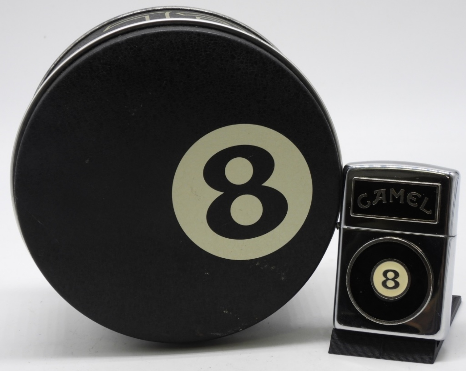 Sealed, in its original tin case. 1995. Camel 8-Ball design